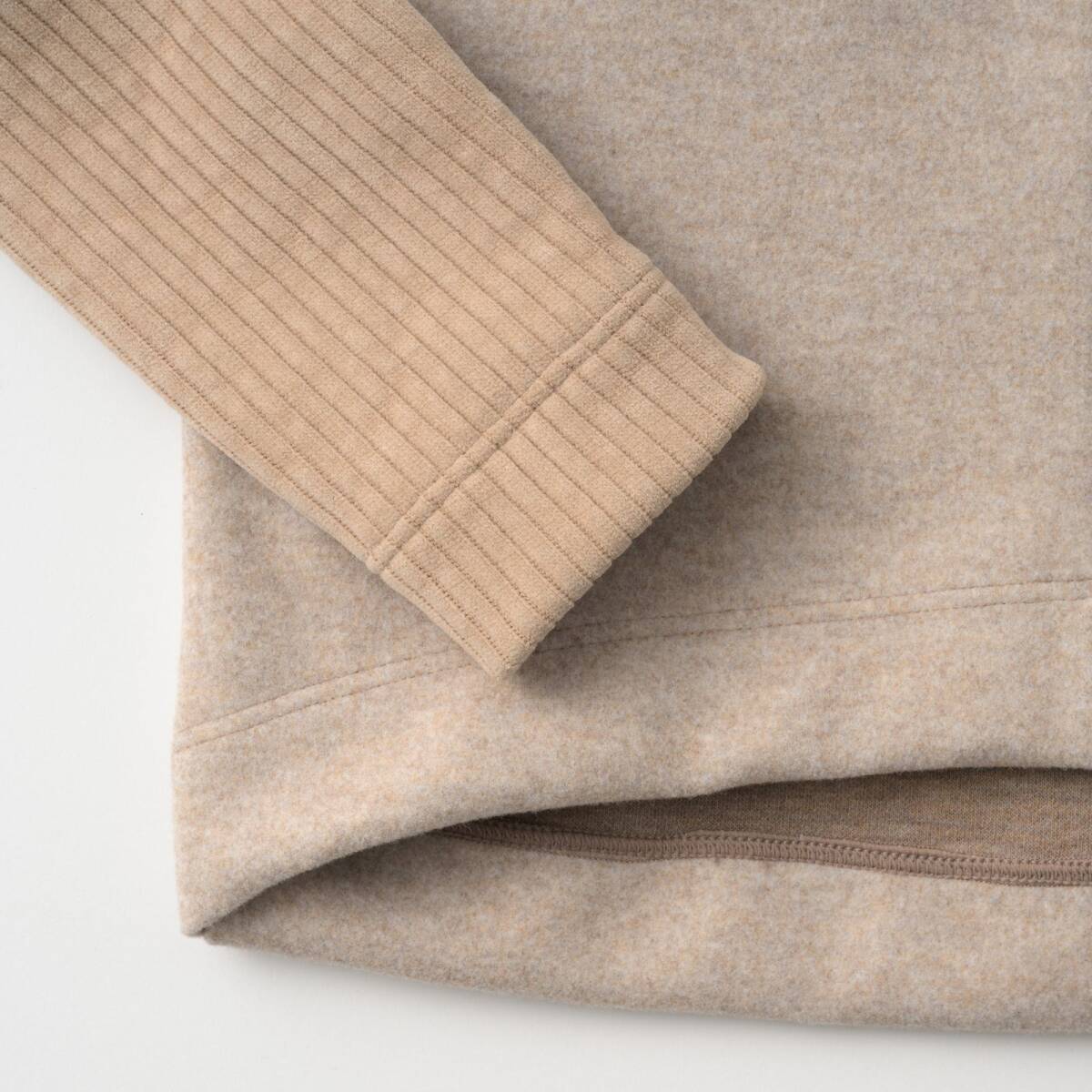 身頃はダブルニットにニードルパンチ加工をすることによって、ウールのような風合いが実現。