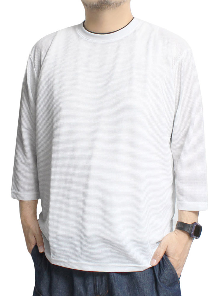 商品名 | 【新品】 3L ホワイト DISCUS(ディスカス) 7分袖 Tシャツ メンズ 大きいサイズ Vネック 無地 ドライ ワッフル 吸汗速乾 消臭 抗菌 カットソー |