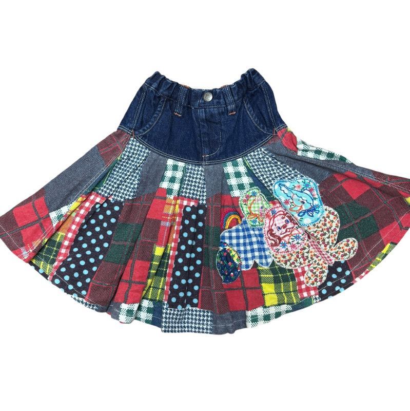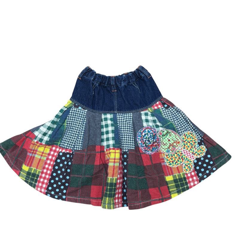 ネル素材とデニムの異素材切り替えのロングスカート。