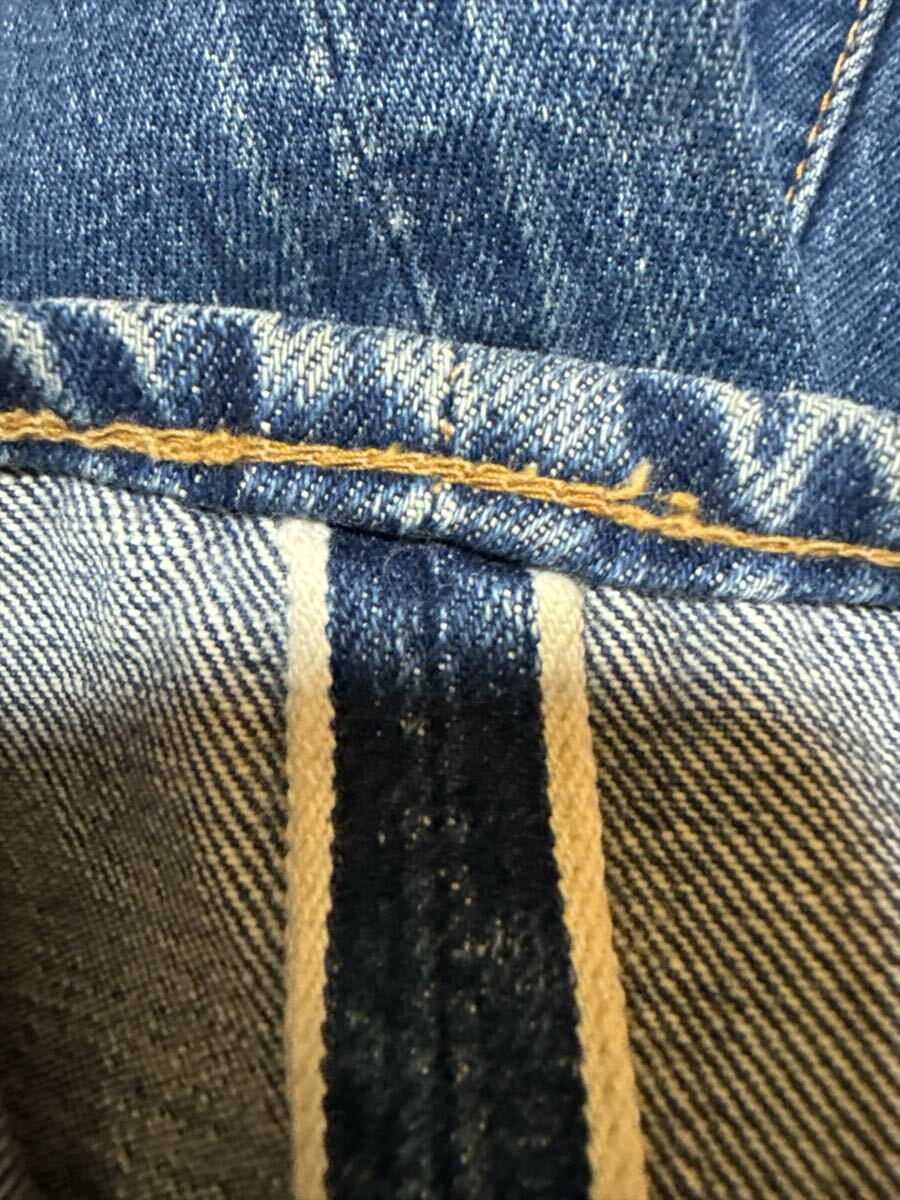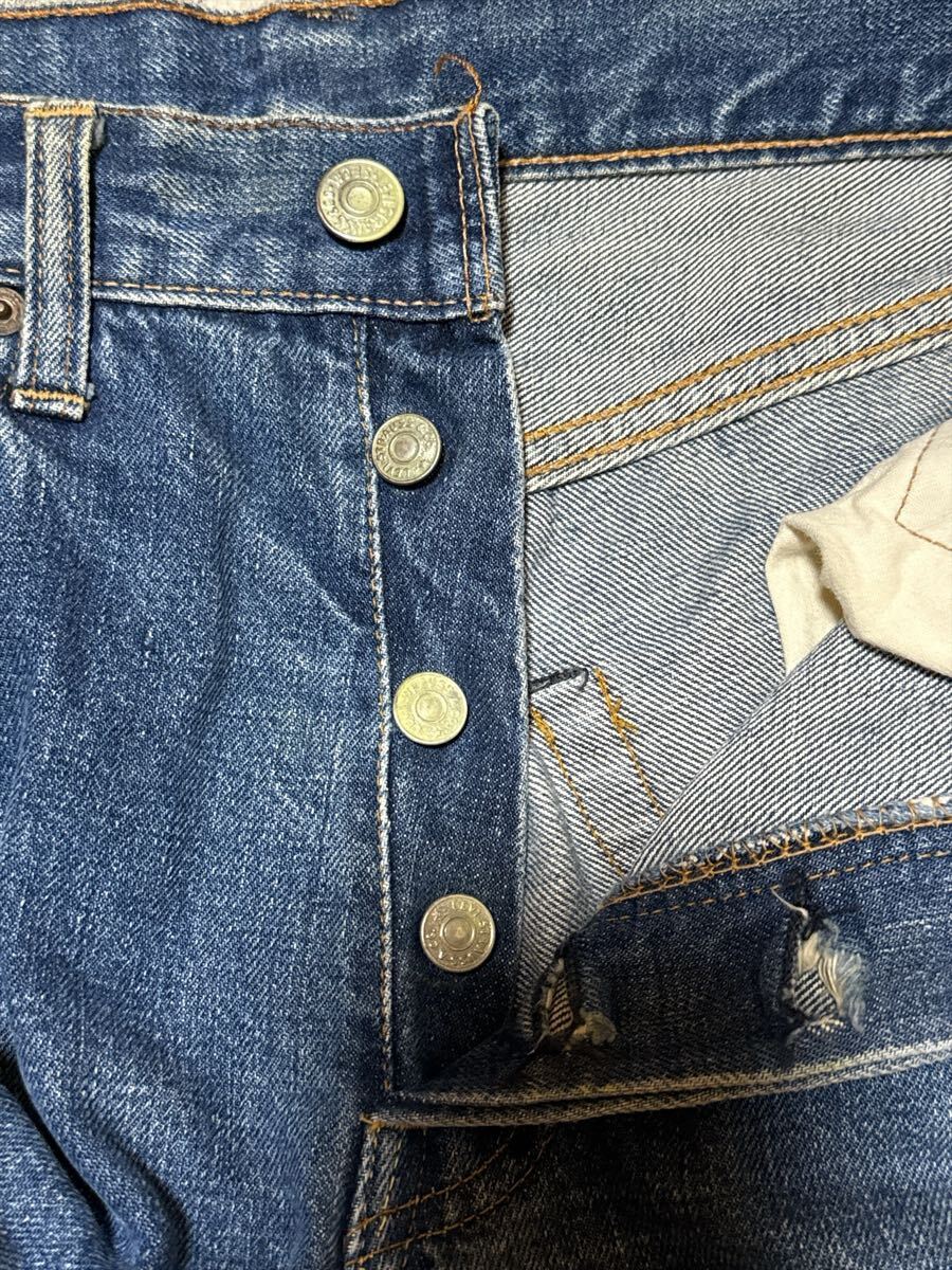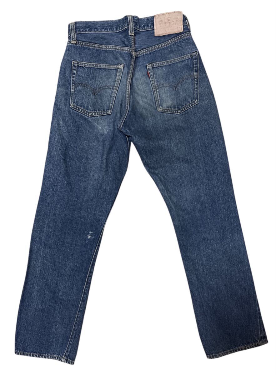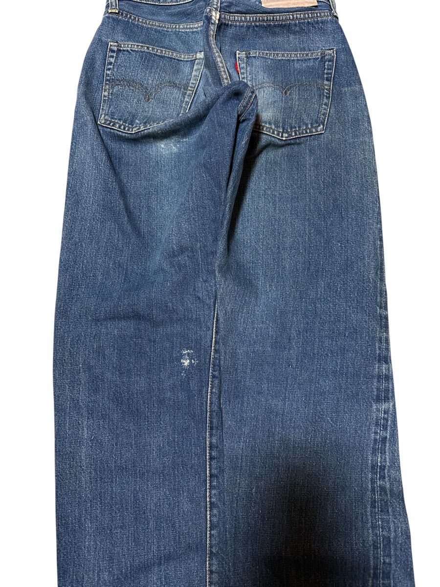 501 66前期 ボタン裏6、足長R、バックポケットシングルステッチ、赤耳 、並行ステッチ等のディテールのインディゴデニムになり裾はチェーンステッチになります。使い勝手もよく大変格好いいです