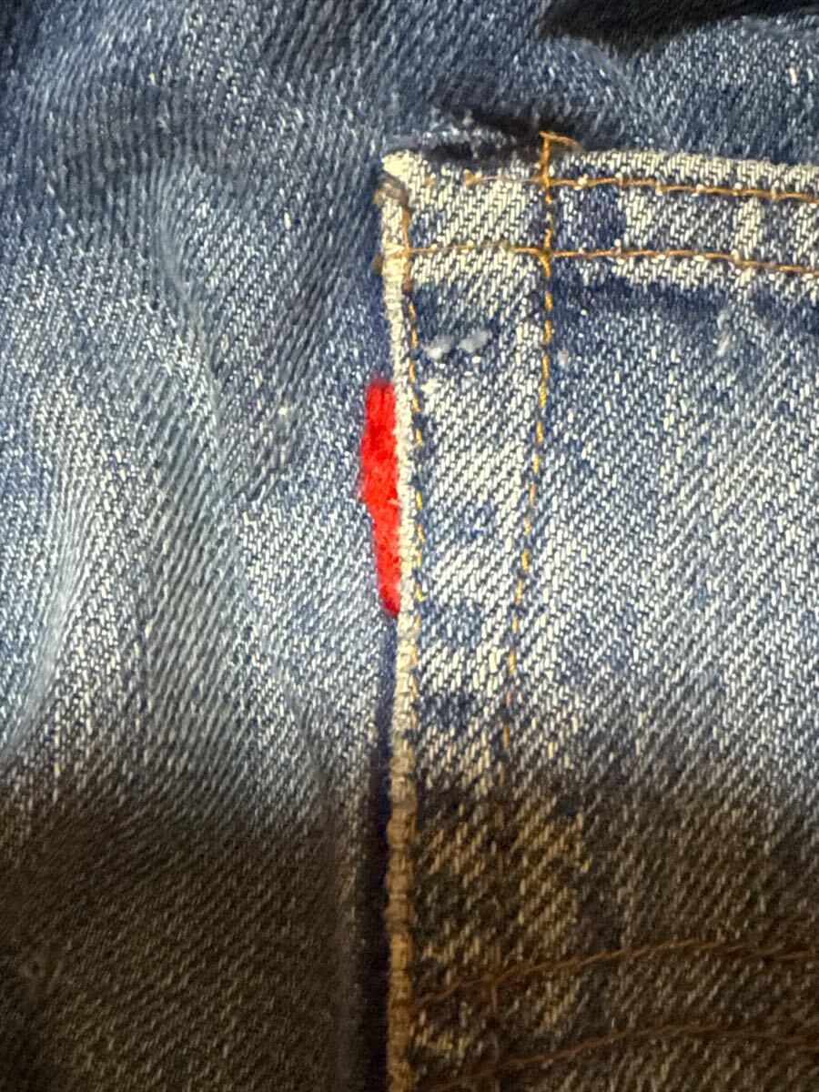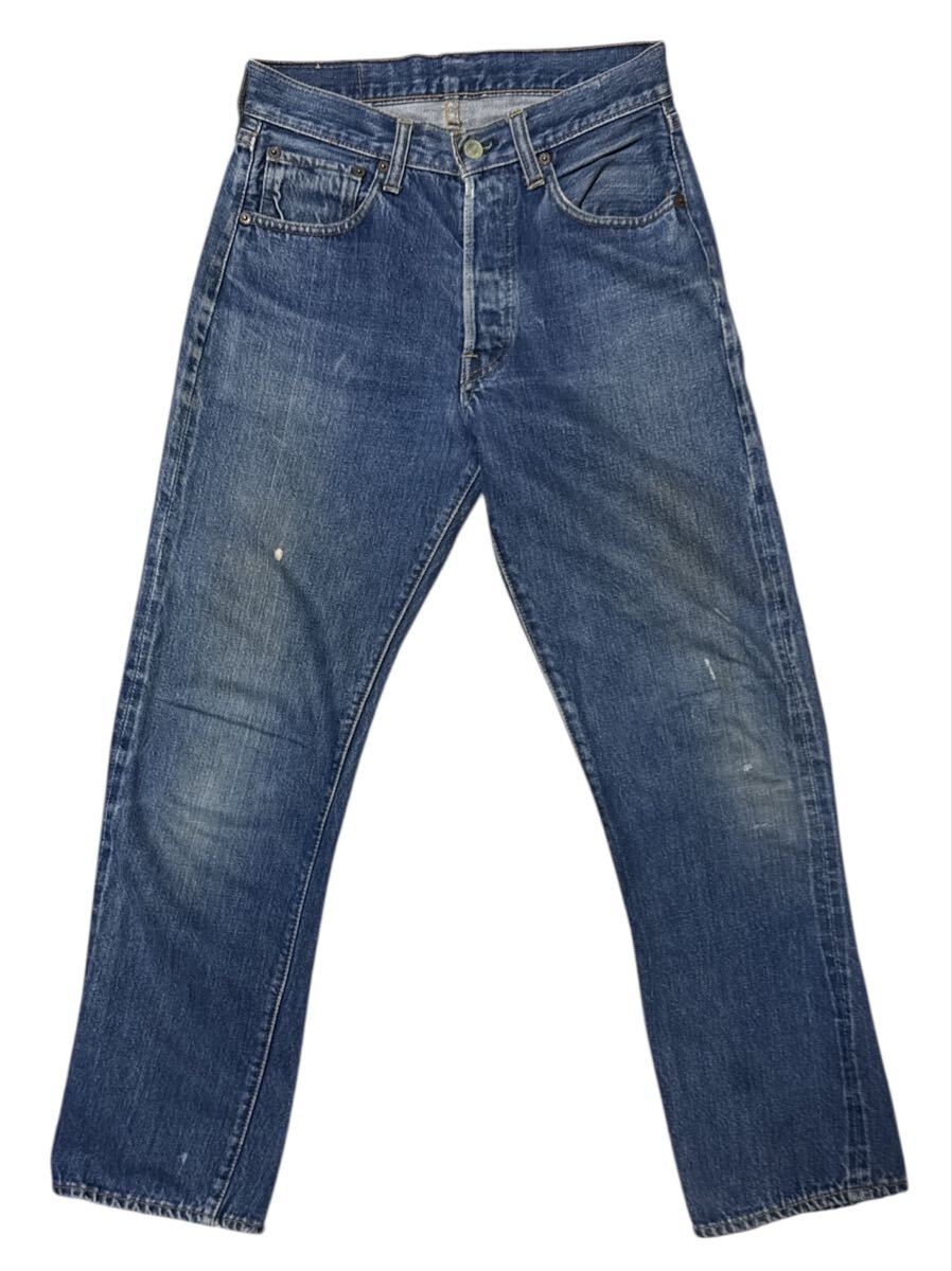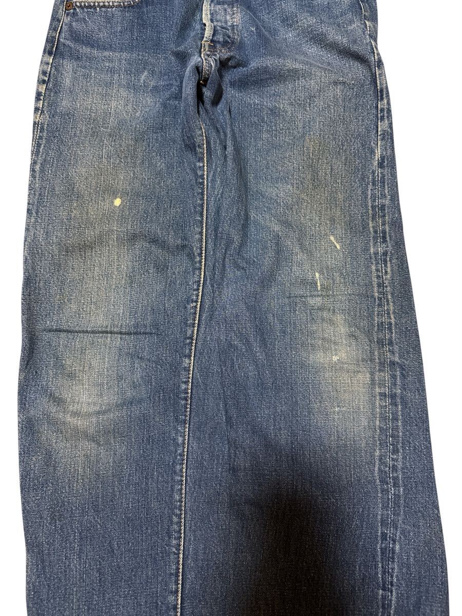 501 66前期 ボタン裏6、足長R、バックポケットシングルステッチ、赤耳 、並行ステッチ等のディテールのインディゴデニムになり裾はチェーンステッチになります。使い勝手もよく大変格好いいです