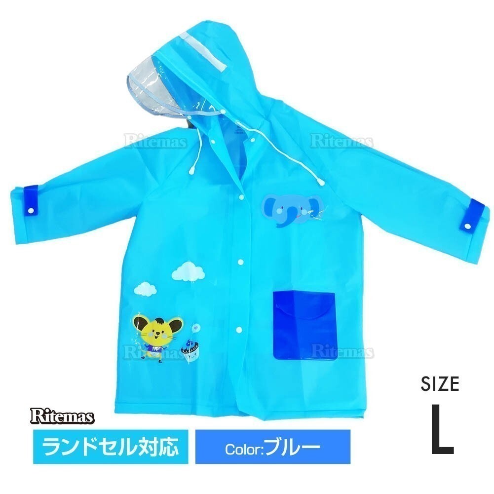 レインコート ランドセル対応 反射テープ 収納袋 子供用 かっぱ 雨合羽 子ども リュック 幼稚園 保育園 小学校 低学年 ブルー Lサイズ
