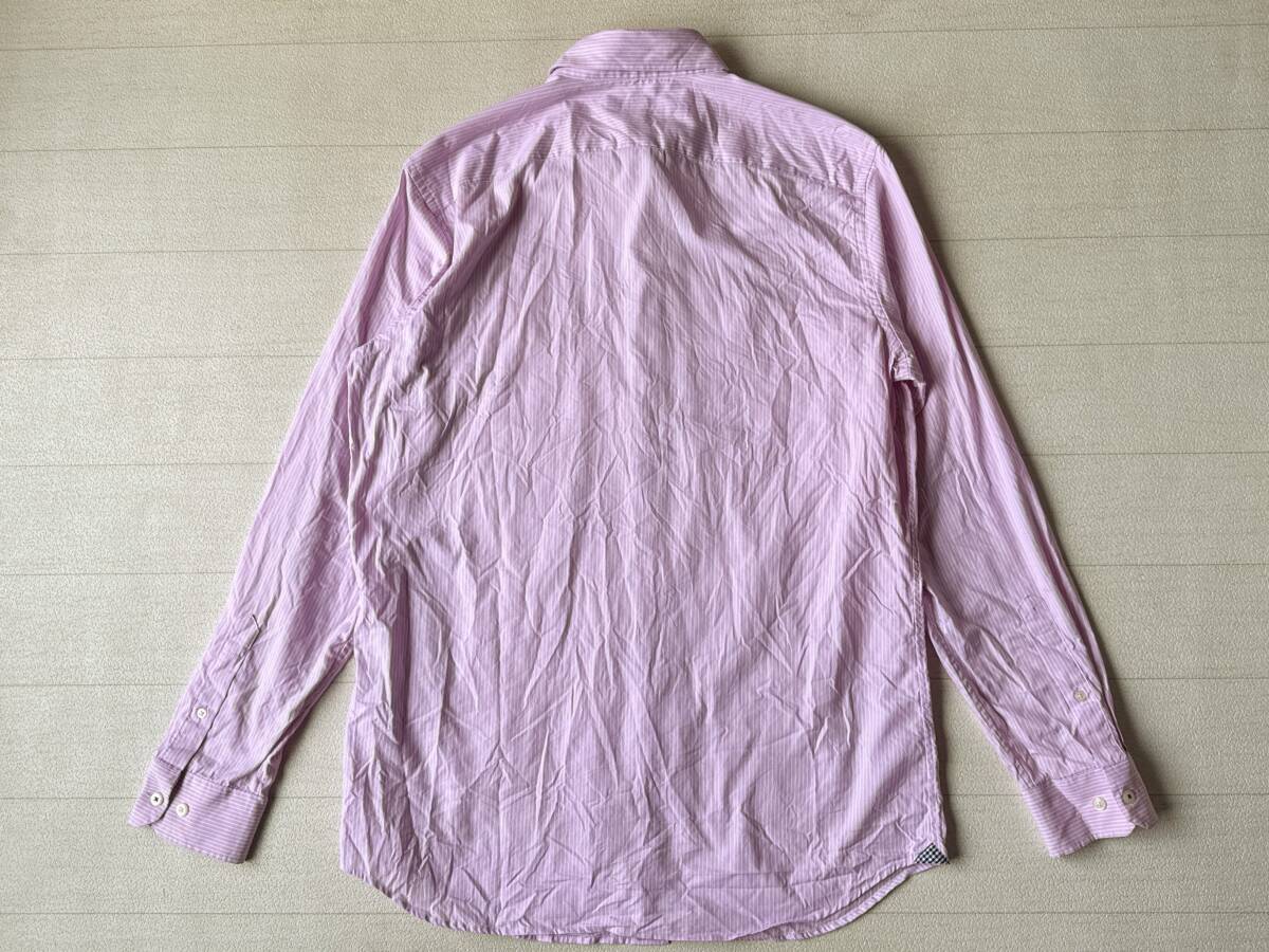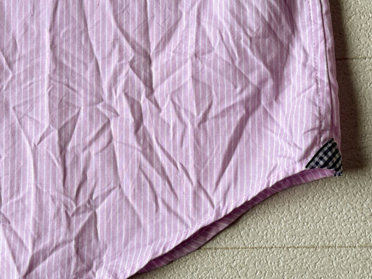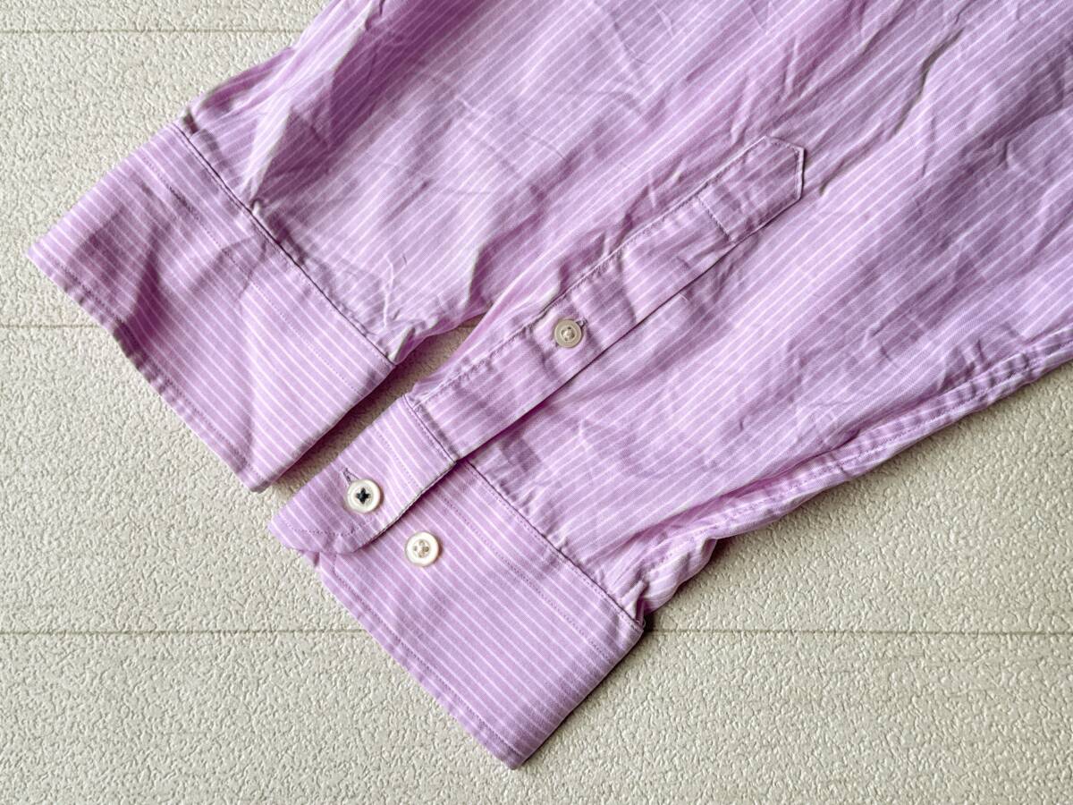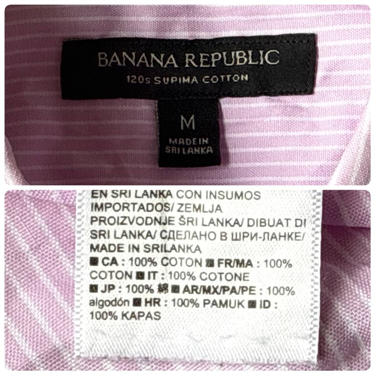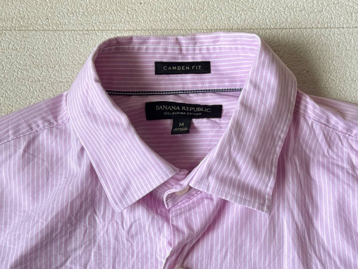 ☆送料無料☆ BANANA REPUBLIC バナナリパブリック 古着 長袖 120’s スーピマ コットン ストライプ シャツ メンズ M ピンク 中古 トップス
