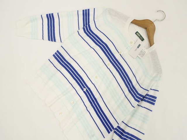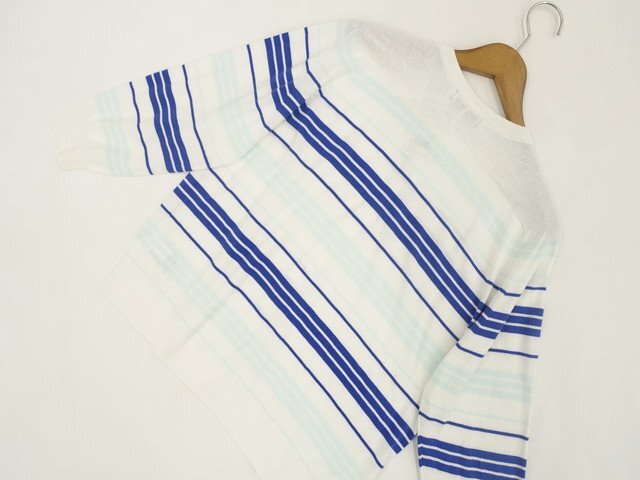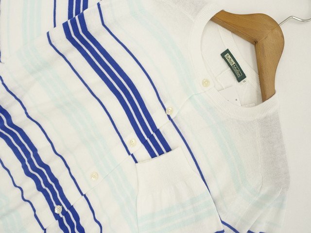 長袖 ニットカーディガン LL ホワイト地 ブルー×ライトブルー ボーダー柄 【メール便可】
