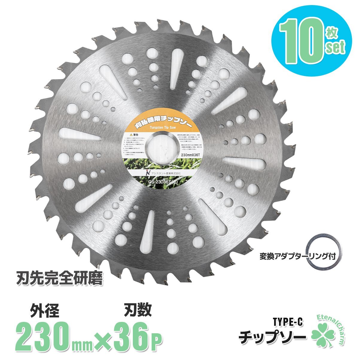 ■送料無料■お買い得【10枚セット】草刈機用 チップソー 草刈機 草刈り機 替え刃 230mm×36P 替刃 36TC ●調整リング付き!