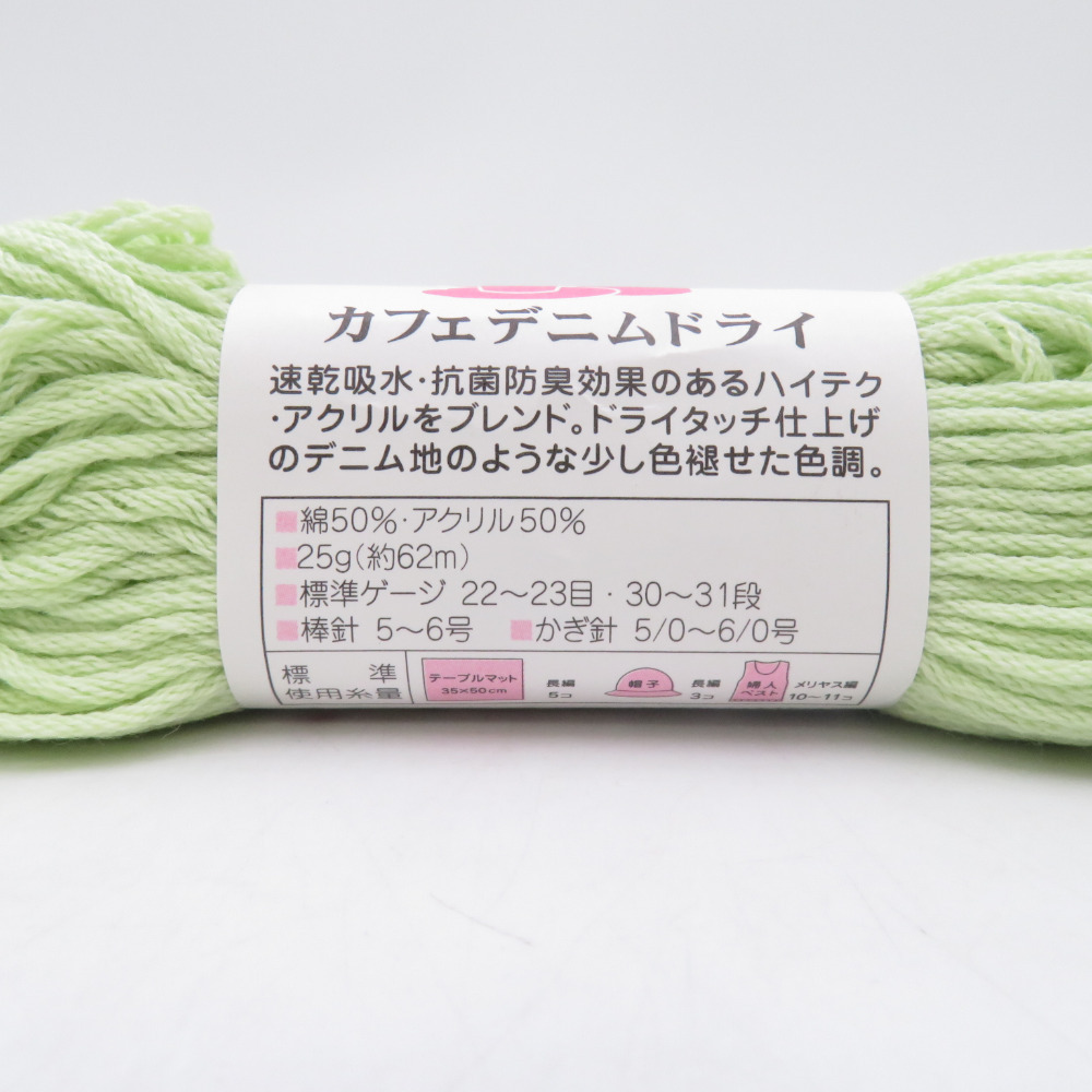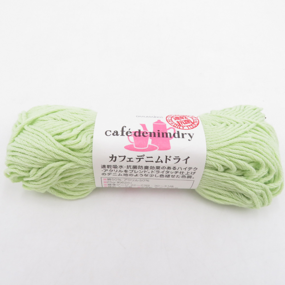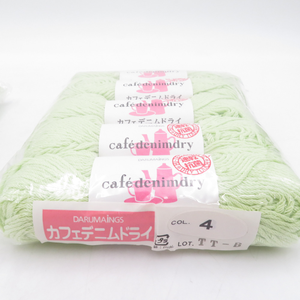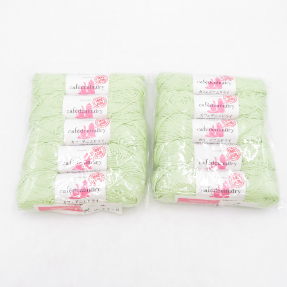 | DARUMA ダルマ 毛糸 cafedenimdry カフェデニムドライ 10玉 4番色 ライトグリーン 1玉25g巻 約62m 綿 アクリル 日本製 春夏毛糸 未使用 |