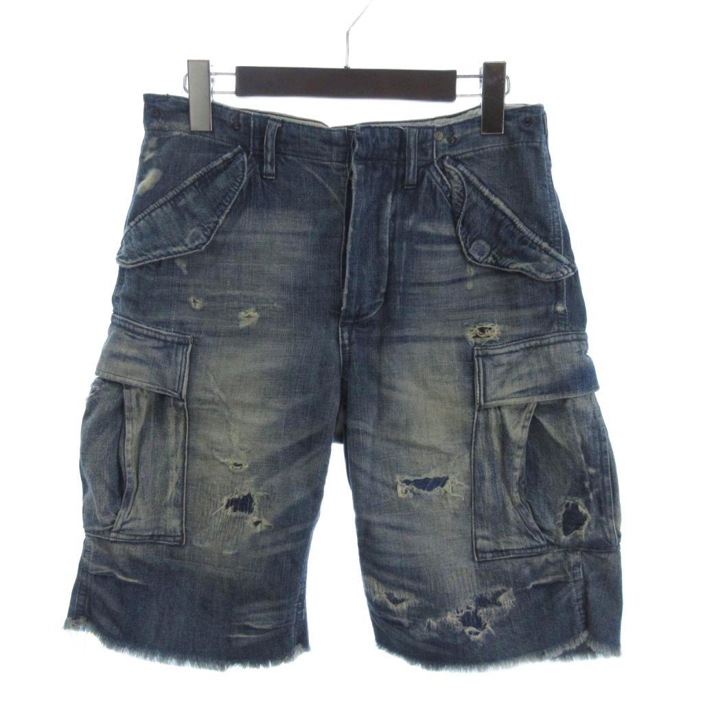 デニム&サプライ ラルフローレン ショートパンツ ハーフ デニム ヴィンテージ加工 カットオフ コットン MJ13L21 青 ブルー 28 ■FF
