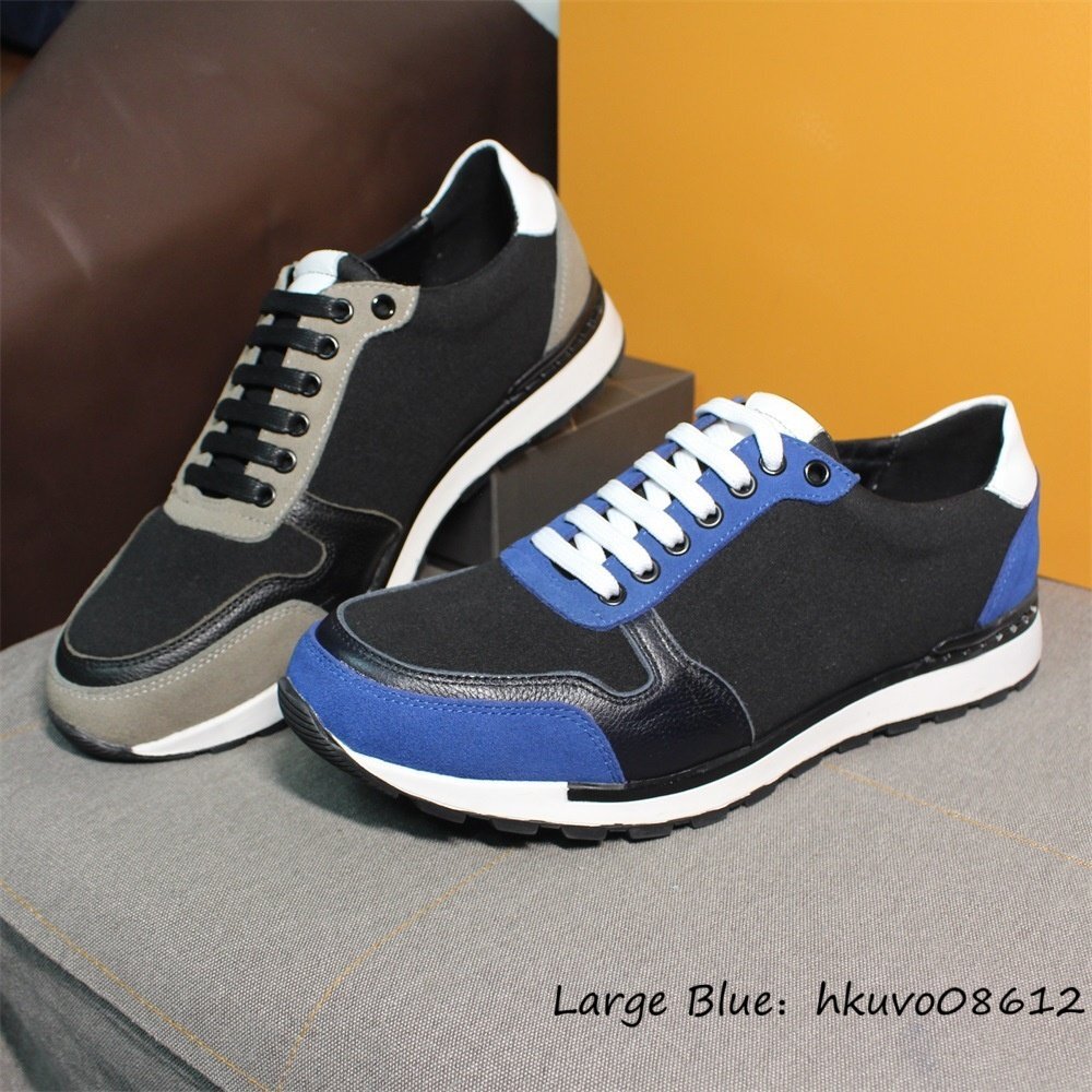 定価9万◆高級本革 運動靴 メンズ ローファー 上質牛革 切替 レザーシューズ 職人手作り 紳士靴 革靴 通勤 スエード革 ブルー 26.5cm