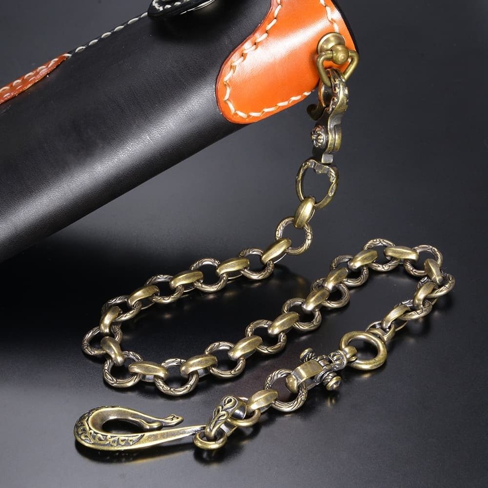 こちらは「ウォレットチェーン 真鍮製 彫り込み模様 釣り針フック ナスカン 55.5cm 」のご購入ページです。 ウォレットチェーンの詳細