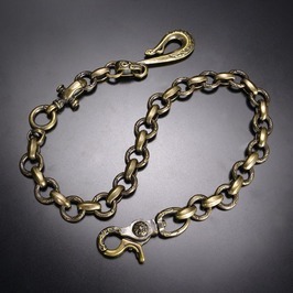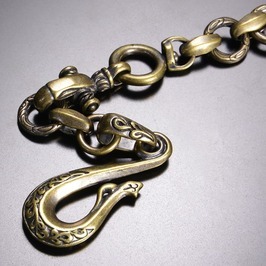 釣り針型のフックとナスカンが付いた真鍮製ウォレットチェーンです。