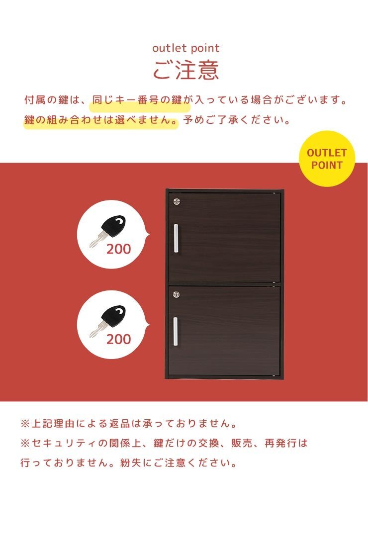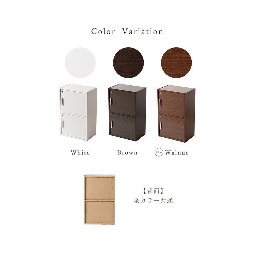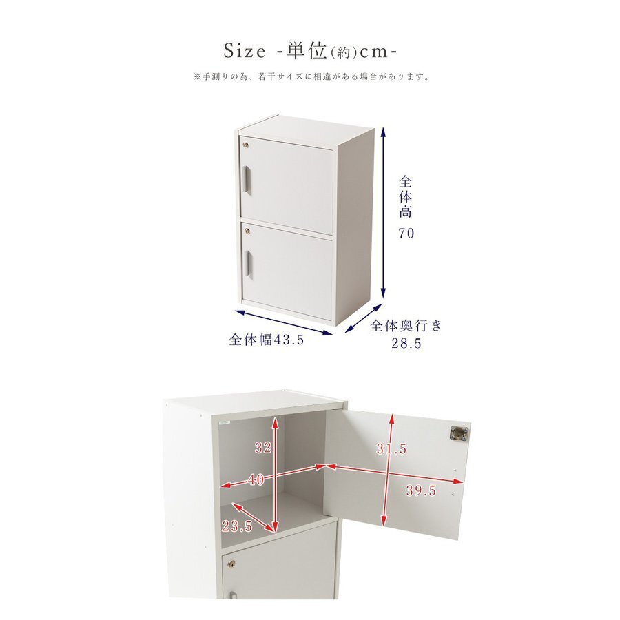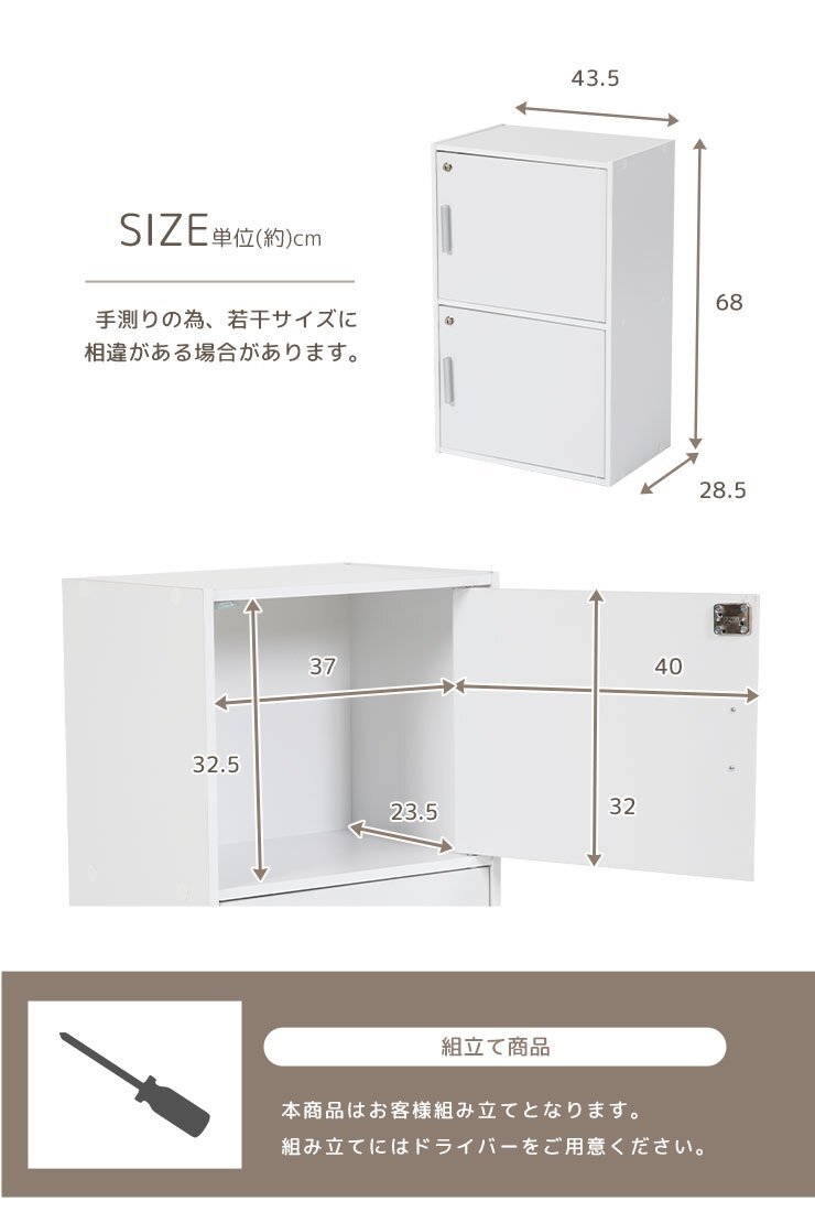 安全・安心! 全扉 鍵付き 収納カラーボックス 2段タイプ 単独キー仕様 木製 収納BOX 2段 鍵付き収納 かんたん組み立て