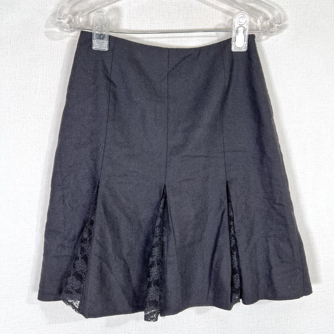 女性用の黒 ブラック系のスカート レーススカート プリーツスカート ボトムスです。シンプルでエレガントなデザインが特徴です。中古品ですが目立つような傷や汚れもなく、まだまだ使っていただけます。