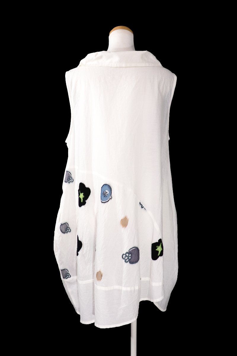 ☆美品☆慈雨センソユニコ/コットンジャガード変形チュニックベスト:40/白系xz634