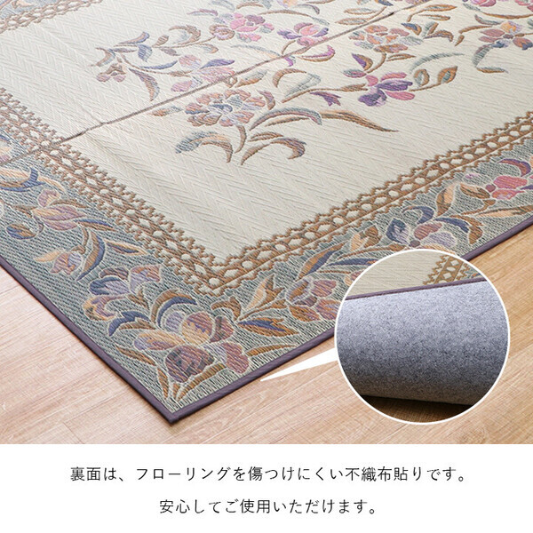 エレガンスな花柄のい草カーペットです。 縦糸の本数が多い袋織りという技法で繊細な柄を出しています。 折れ曲がりが複雑なので、長いイ草を使用しないと切れてしまいます。 縦糸が密なので、しっかりとして破れにくいのが特徴です。 い草には空気の自然浄化作用、湿度の調節作用などがあります。 また汚れにくく、使用するうちに黄金色に変化し味が出ます。 フローリングを傷つけにくいよう裏には不織布を貼っています。 い草に青森ヒバ加工を施しています。 (抗菌、防臭効果) 約261×261cm ■生産地:中国 ■素材・成分:素材: 表地=い草※袋三重織 裏地=不織布 ヘリ=綿100% ■使用上の注意 ※ヘリ際と中央部分で色が違って見える場合がありますが、色むら・日焼けではなくい草の特性であり、不良ではございません。 着日指定はお受けすることができません 発送後お問い合わせ番号をご連絡しますので 配送業者と調整をお願いいたします ************ 大型家具の場合 配送先地域によっては発送後8~10日ほどかかる場合があります ************ |
