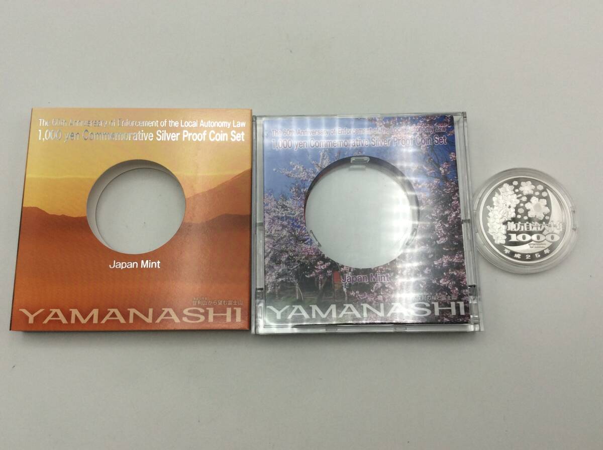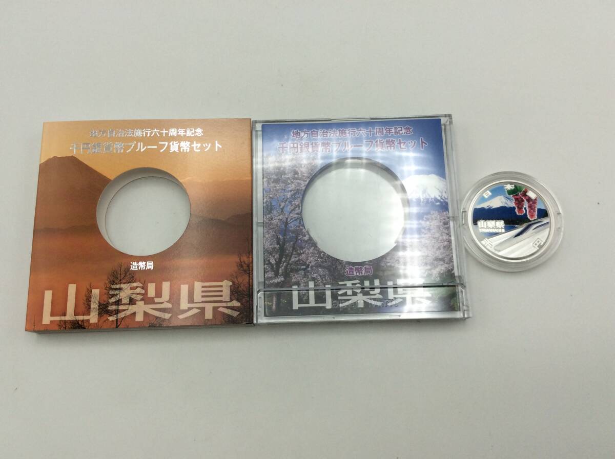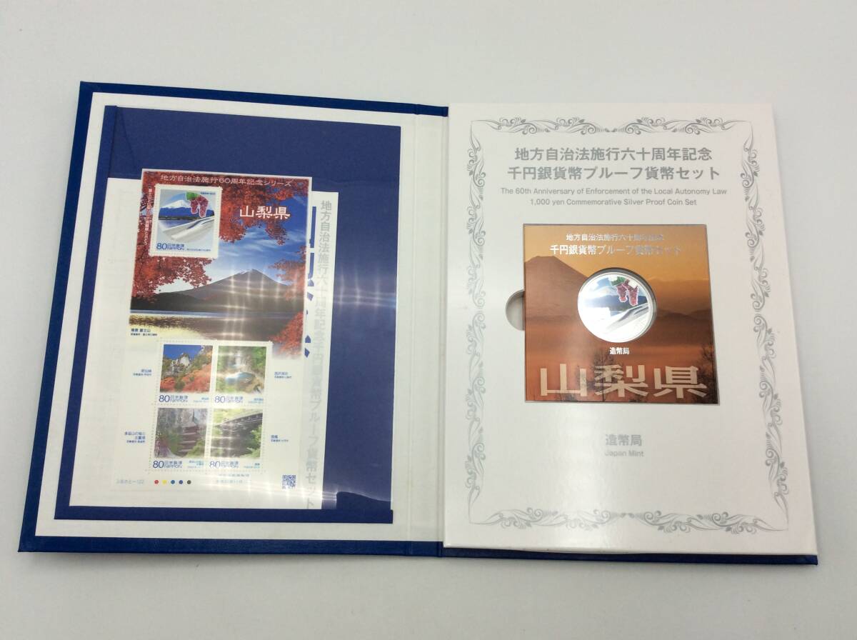 山梨県 造幣局 地方自治法施行六十周年記念 千円銀貨幣プルーフ貨幣セット ケース 切手400円分付き 総重量約39.41g 現状品
