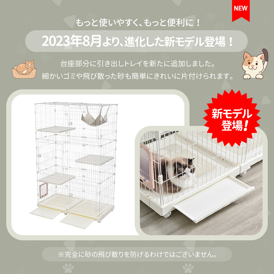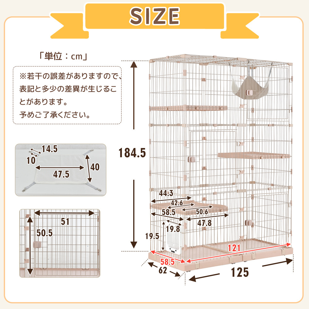 この商品について: ◎01 こんな時に大活躍キャットケージ ◎02 幅広設計 ◎03 自由に組み合わせられる ◎04 錆びにくい塗料 ◎05つまみタイプのドア ◎06広い棚板 ◎07猫ドア付き ◎08ハンモック付き ◎09一段と二段タイプとしても使用可能 商品の説明: ◆01こんな時に大活躍キャットケージ 1出かける時 お留守番時に、子猫の安全を守る 2多頭飼いの時 けんか防止用。最初の仲悪い時期にネコたちを分離して冷静にする。 3猫の運動不足を解消したい時 二段と三段のケージで上下運動できます。 4ネコちゃんが病気になる時 世話しやすい構造。他の子とも距離を保つ。 5お料理中やお食事中 いたずら防止やテーブルに上がるのを防止… ◆02幅広設計 広々としたスペースで窮屈しない ◆03自由に組み合わせられる 自由に組み合わせられるので、ニャンコのお城を作ってみよう! ◆04錆びにくい塗料 錆びにくいエポキシ樹脂塗料 耐食性、耐摩耗性に優れていて、末永くお使いいただけます。 ◆05つまみタイプのドア つまみタイプのドアがいたずらしにくい 全ての段に扉がついているので、ニャンコや物の出し入れが簡単です。 ◆06広い棚板 広い棚板でのびのびリラックス 広々とした棚板があり、猫ちゃんがのんびりリラックスできます。 サイズが十分あるので、棚板に猫ベッドやおもちゃなども置ける。 ケージから棚板を出すことも非常に簡単で、掃除しやすいです。 ◆07猫ドア付き 自由に出入りができる猫ドアが付きで、ケージをリラックスして過ごせる場所になります。飼い主の都合によって、外からロックすることもできます。 ◆08ハンモック付き 贅沢なハンモックでニャンコがゆったりリラックスできます。 ◆09一段と二段タイプとしても使用可能 子猫一匹は一段、大きくなってきたら、家族が増えたら、新しいネコちゃんを迎えることになったら、二段または三段に増築し、楽しくアレンジできます!