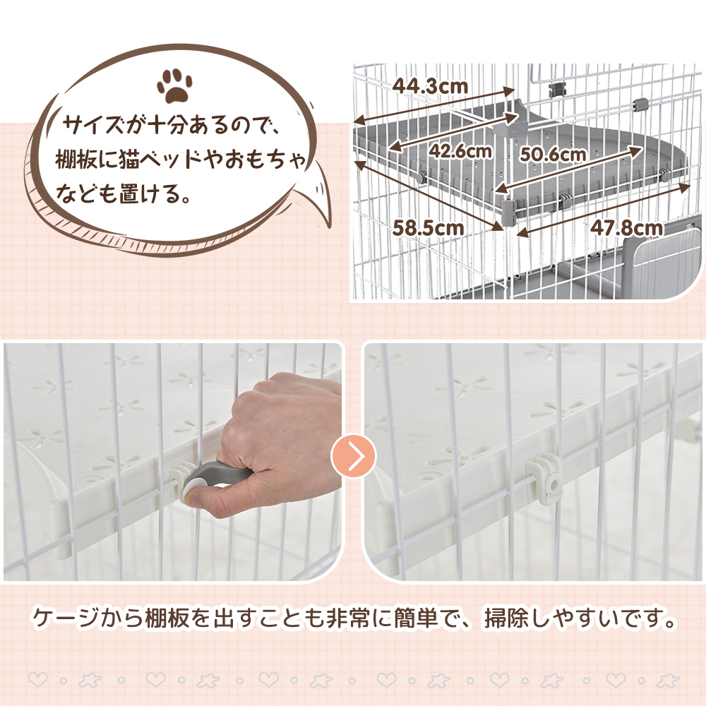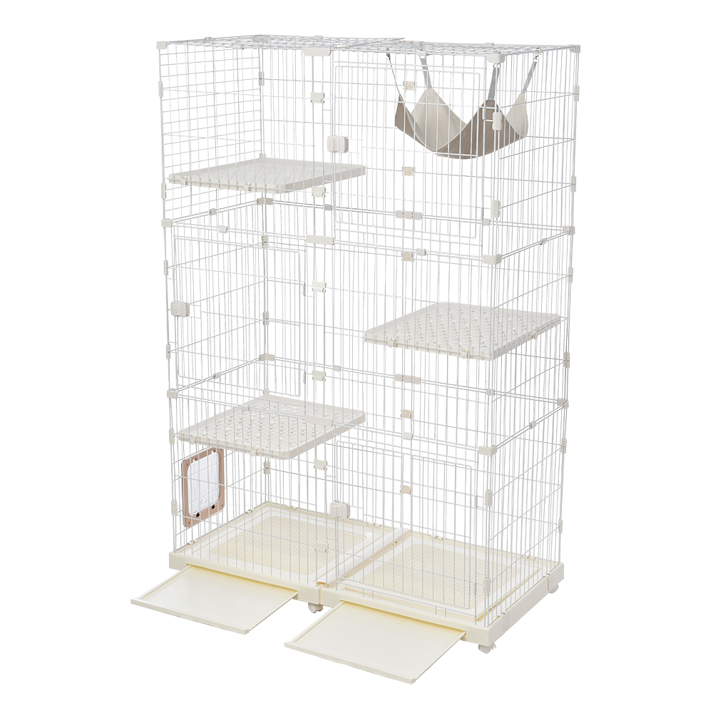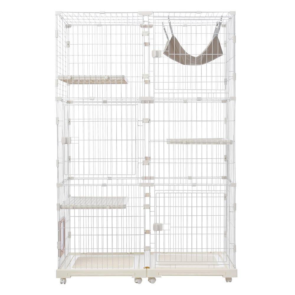 猫 ケージ キャットケージ 3段 幅広設計 自由組み合わせ 猫ドア付き ハンモック付き 大型 猫ゲージ 高級感 おしゃれ 【ホワイト】