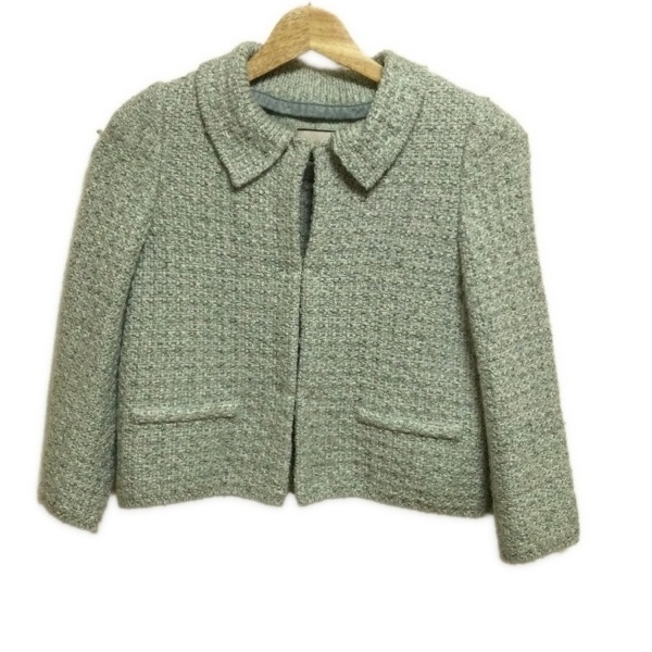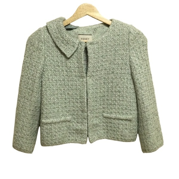 フォクシー FOXEY サイズ38 M 37738 - ライトブルー レディース 七分袖/ニット/肩パッド/ショート丈/襟着脱可/オールシーズン ジャケット