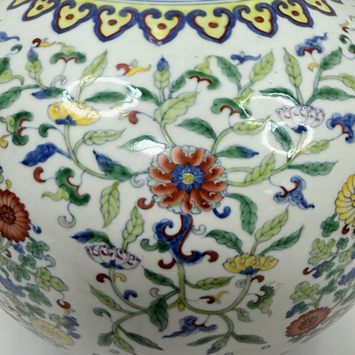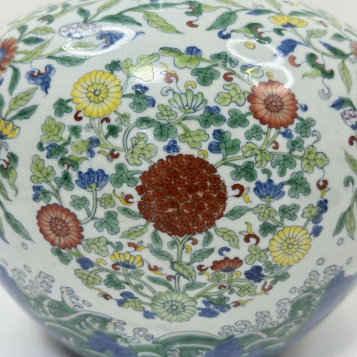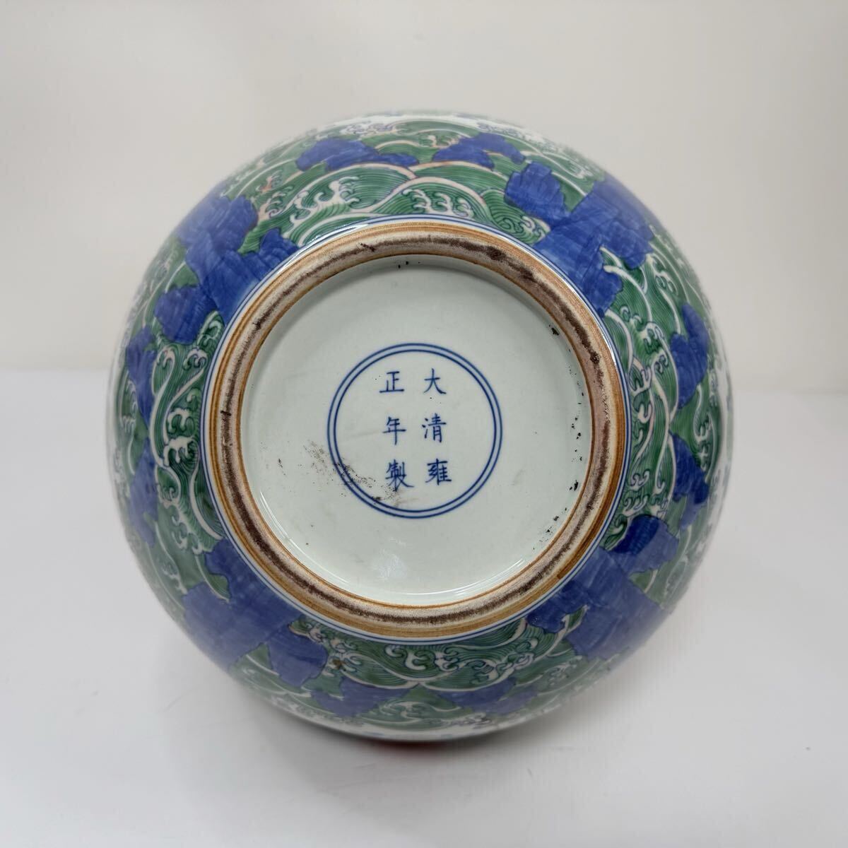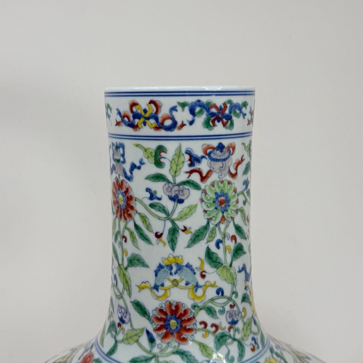 | CB6-中国古美術 時代物 花瓶 花器 花生 花入 天球瓶 色絵 花草図 在銘 大清雍正年製 唐物 陶磁器 中国古玩 骨董品 幅29cm 高さ40cm |