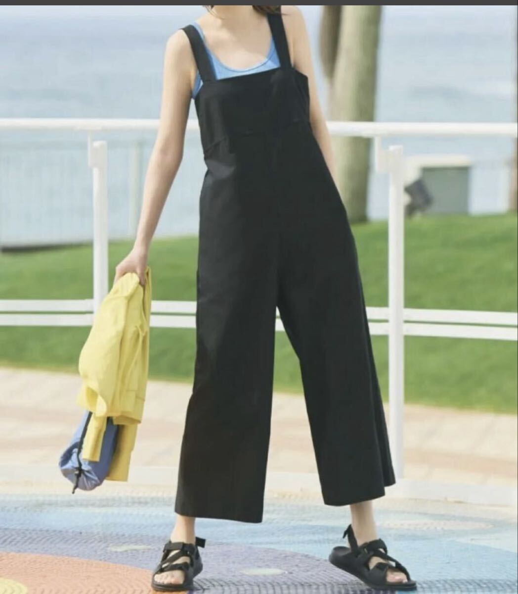新品 ユニクロ リネンブレンドサロペット ブラック M UNIQLO サロペット オーバーオール キャミソールサロペット 黒