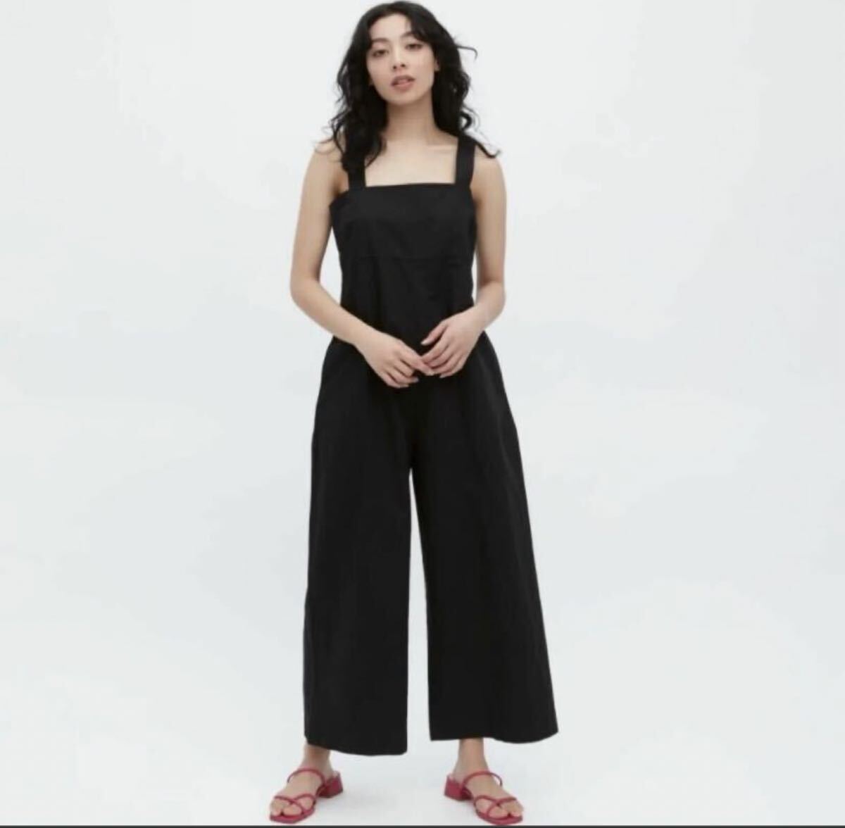 新品 ユニクロ リネンブレンドサロペット ブラック M UNIQLO サロペット オーバーオール キャミソールサロペット
