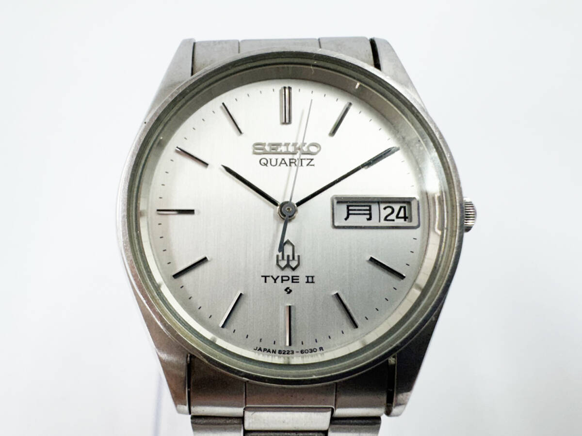 【外装美品】SEIKO セイコー TYPEII タイプ2 デイデイト シルバー文字盤 8223-6030 QZ メンズ腕時計 ヴィンテージ