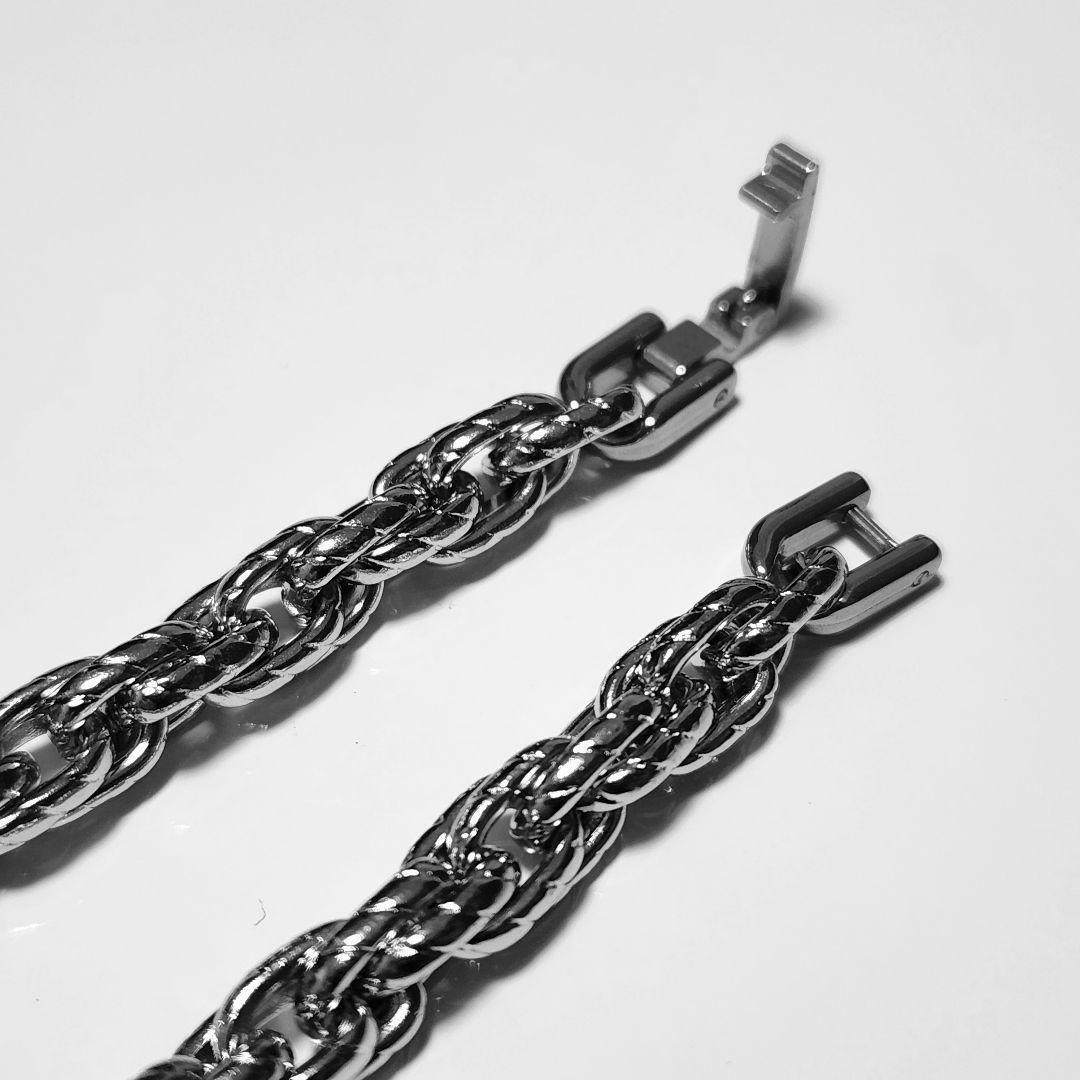 らせん状に複雑に重なり合ったデザインが格好いいロープチェーンネックレスです。