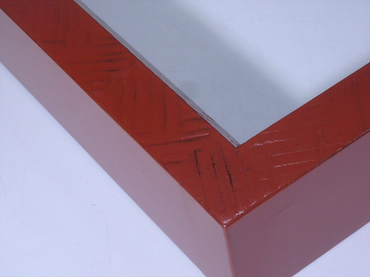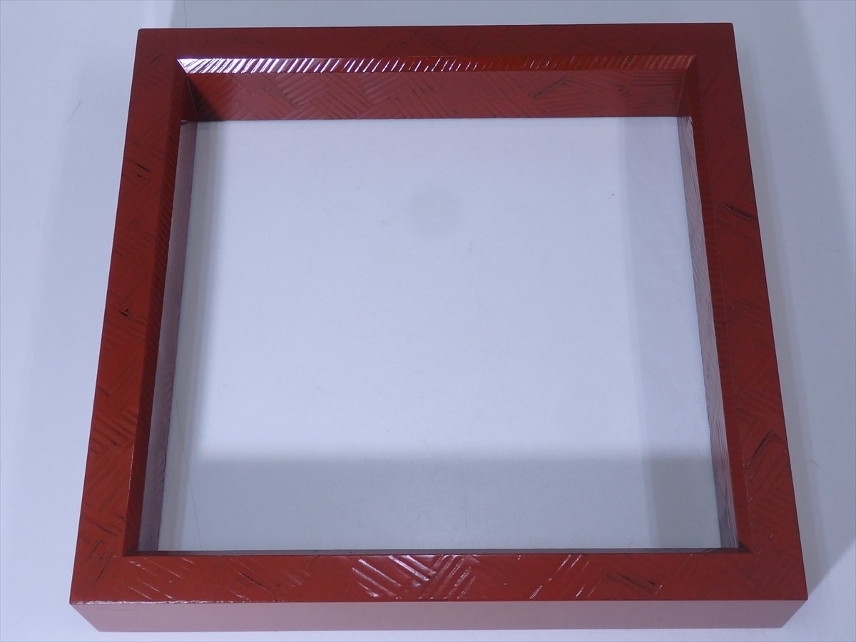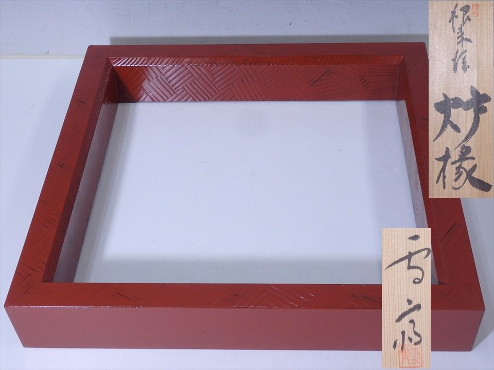 ★香川 讃岐 坂本雪斎【根来塗炉縁 共箱】木製漆器 網代のような浮き彫り! 42.5cm角 高さ6.5cm 茶道具 家具 茶器