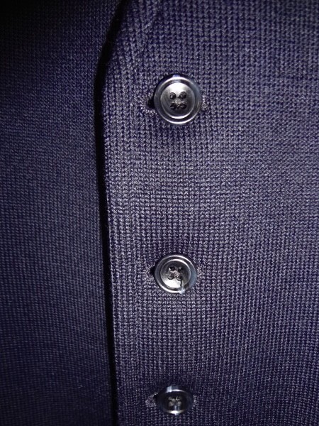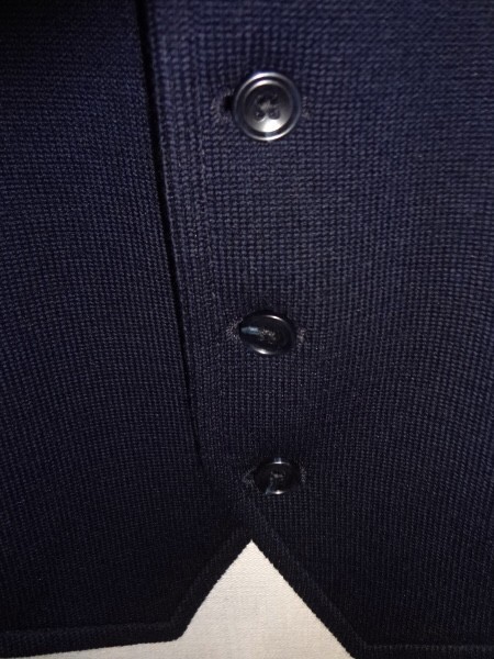 色はダークネイビー系で、ブラックに近いダークネイビー×ネイビーによる細かな格子状ジャージーニットの織柄生地となります。