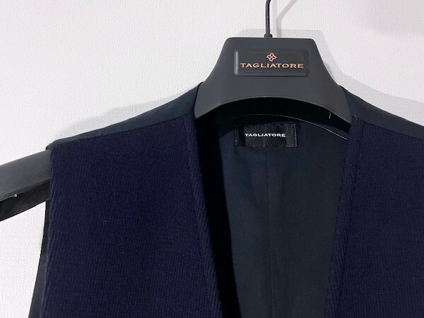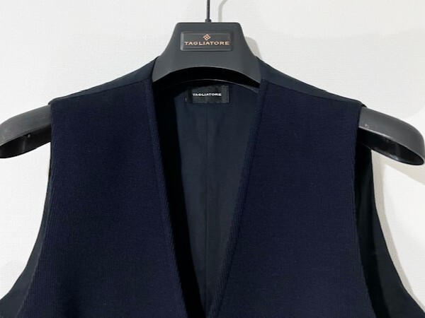 極美品◆現行タグ◆24-25年秋冬◆TAGLIATORE◆濃紺ジャージーニット織柄ジレ◆イタリア製◆ダークネイビー◆タリアトーレ◆ベスト◆M◆46