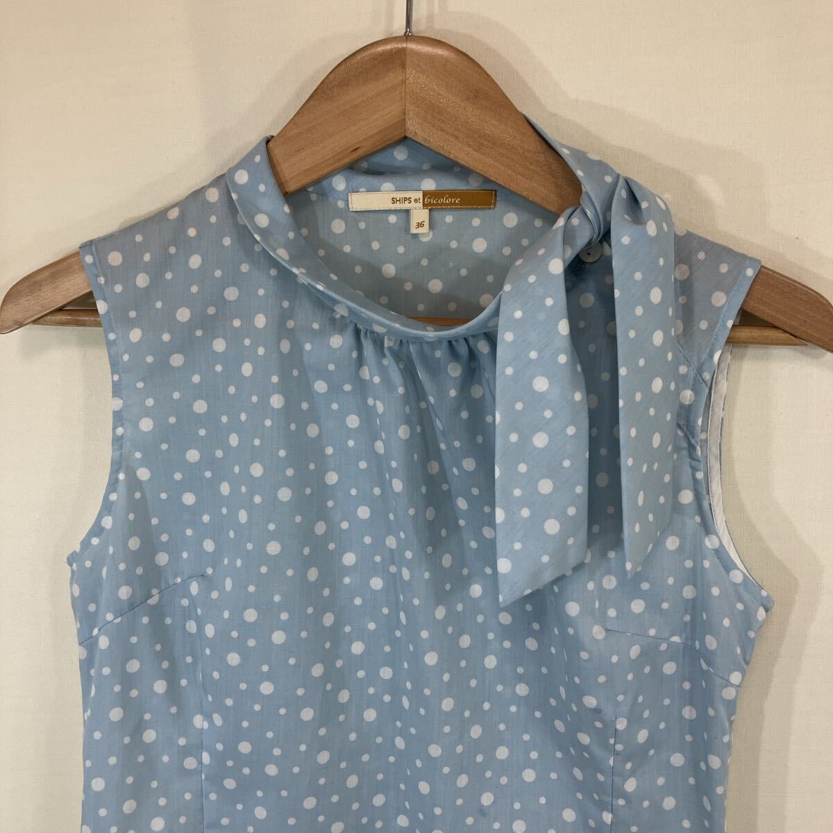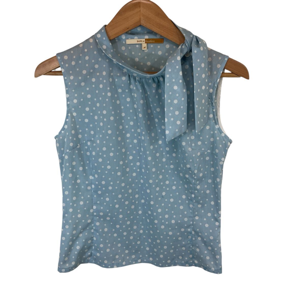 ships シップス ladies レディース トップス ドット柄 ノースリーブ カットソー シャツ リボン ポリエステル