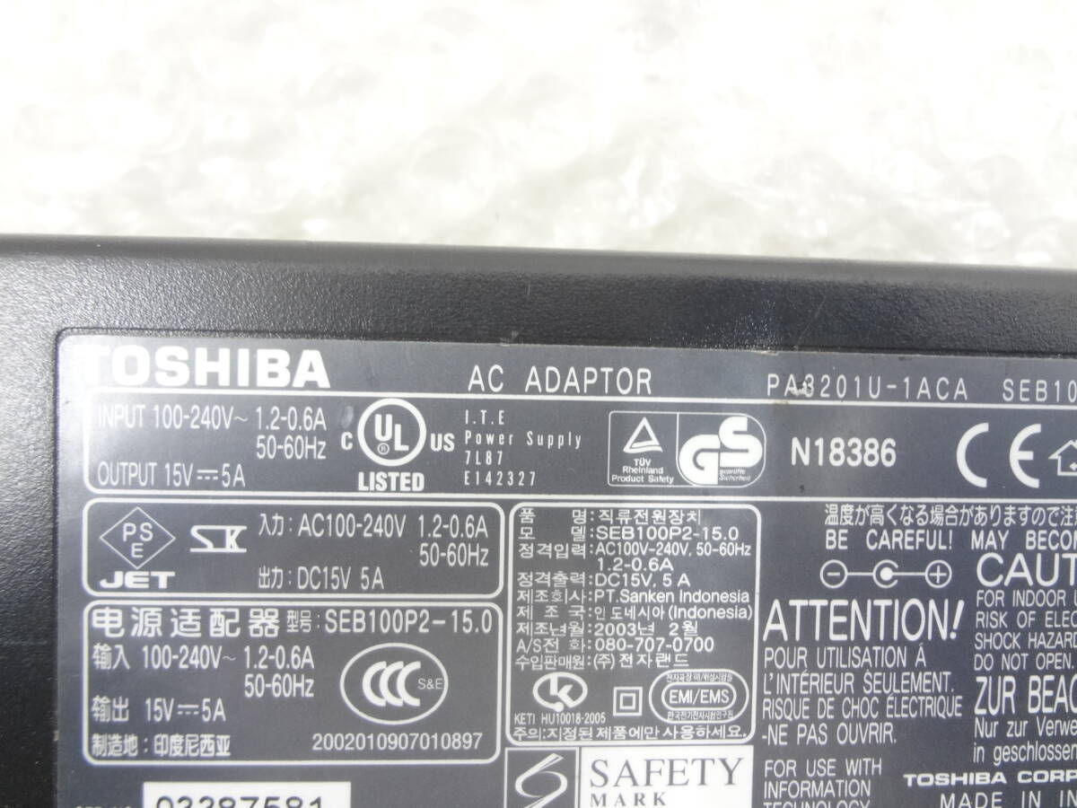 10個まとめ★TOSHIBA ACアダプター PA3201U-1ACA 15V 5A 外径約5.5mm 電源ケーブル付き 中古動作品