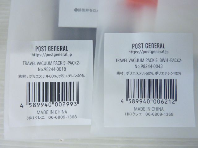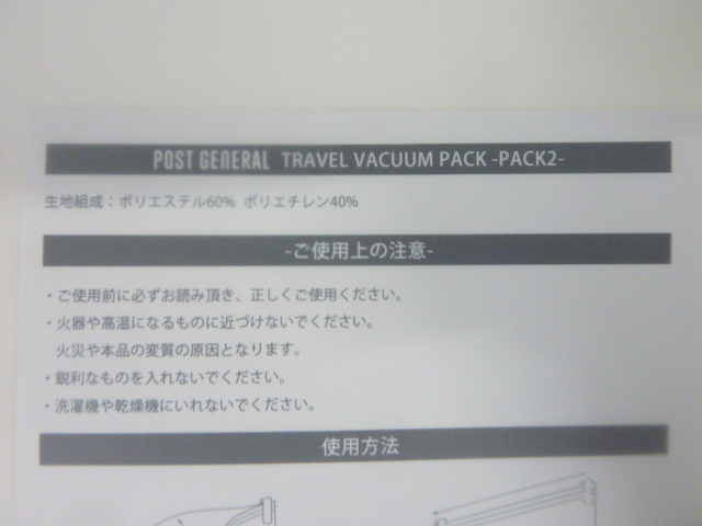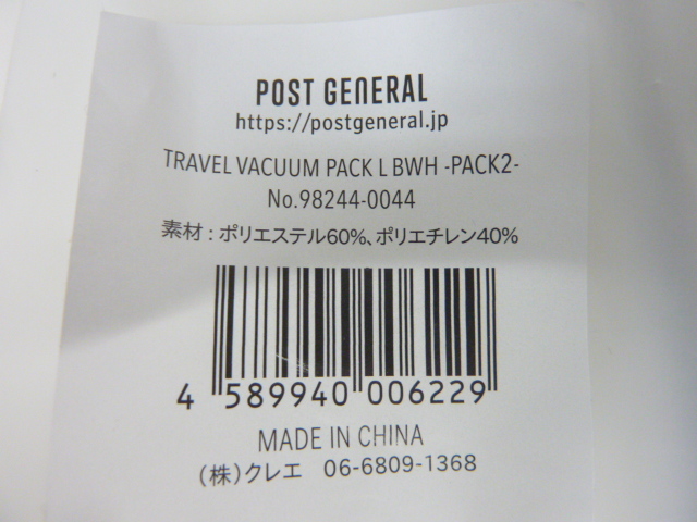 未使用保管品 ポストジェネラル トラベル バキュームパック (L)2枚セット×5点 , (S)2枚セット×2点 まとめ 旅行 収納 衣類 圧縮袋