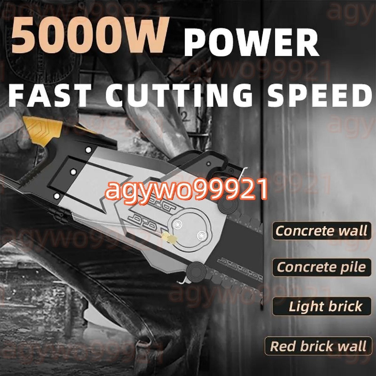 純銅モーター: ハンドヘルド電動チェーンソー壁カッターは、5000W 純銅ブラシレスモーターと太い耐高温銅線を採用しており、強力で止められない性能を備えています。速度は5000~6500rpmと高く、火花が出ずに切断が容易で、損失が少なく、安定した動作で、時間と労力を節約できます。