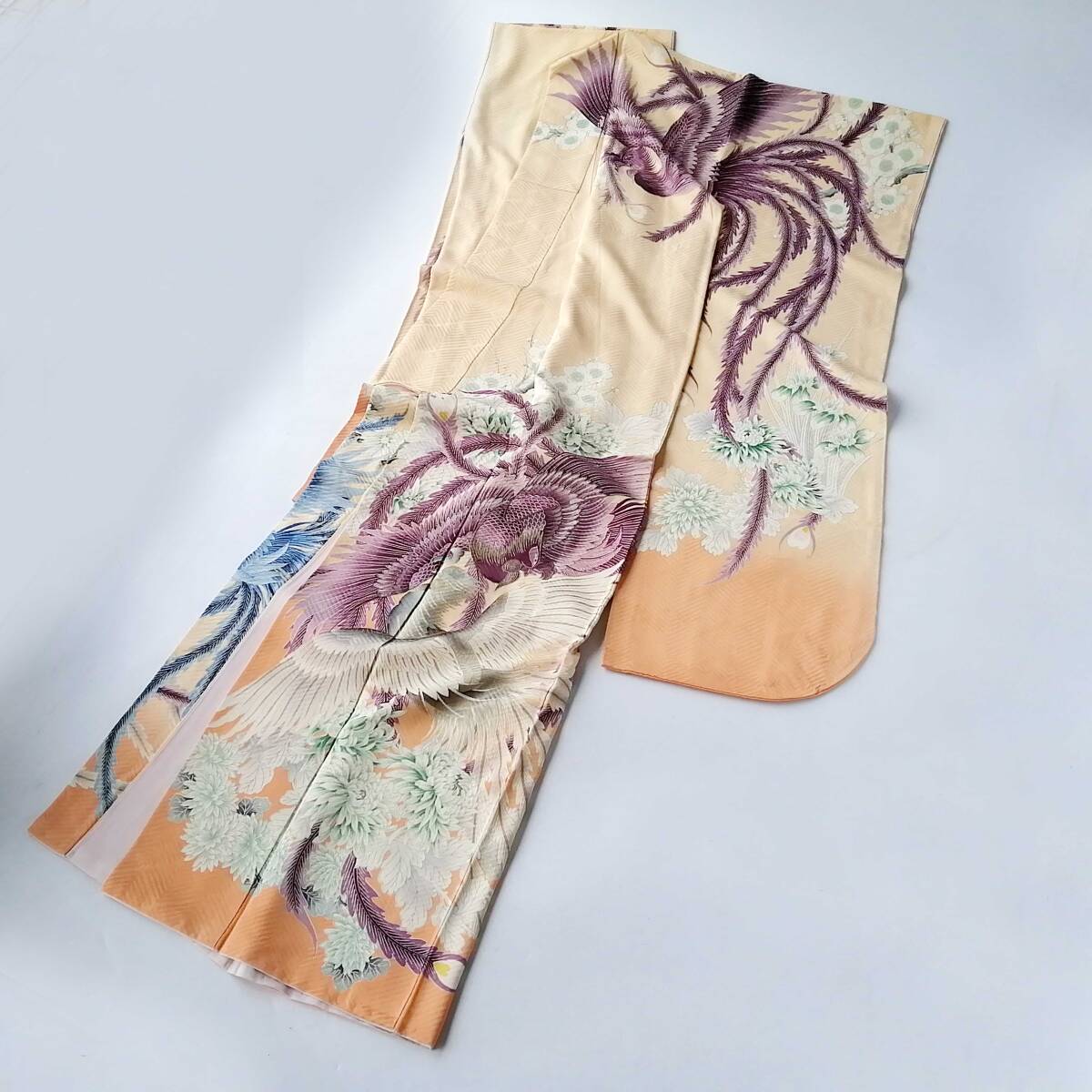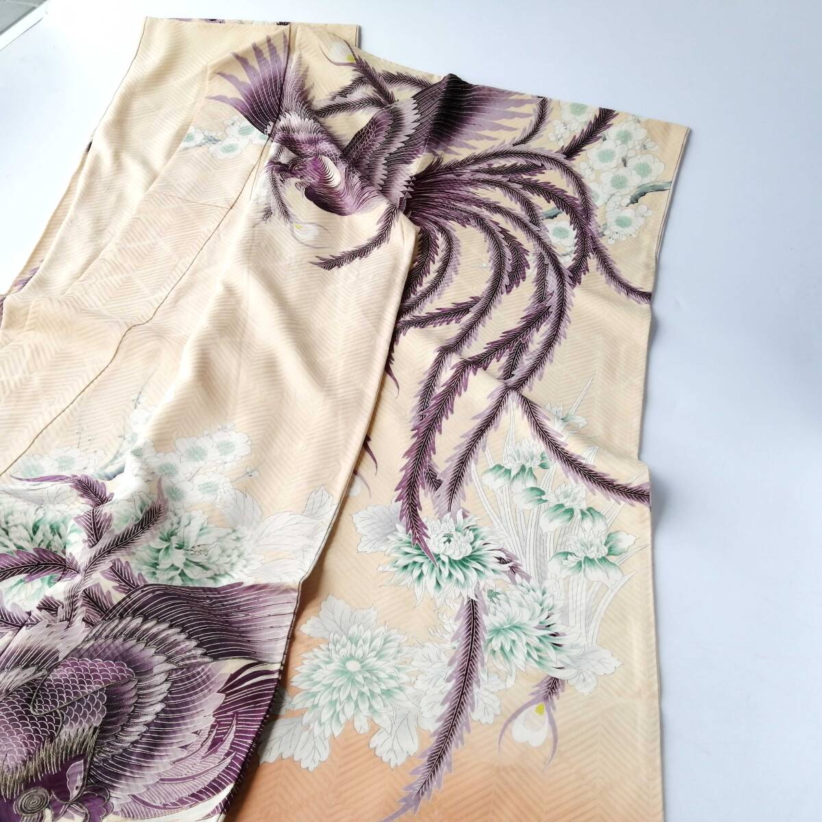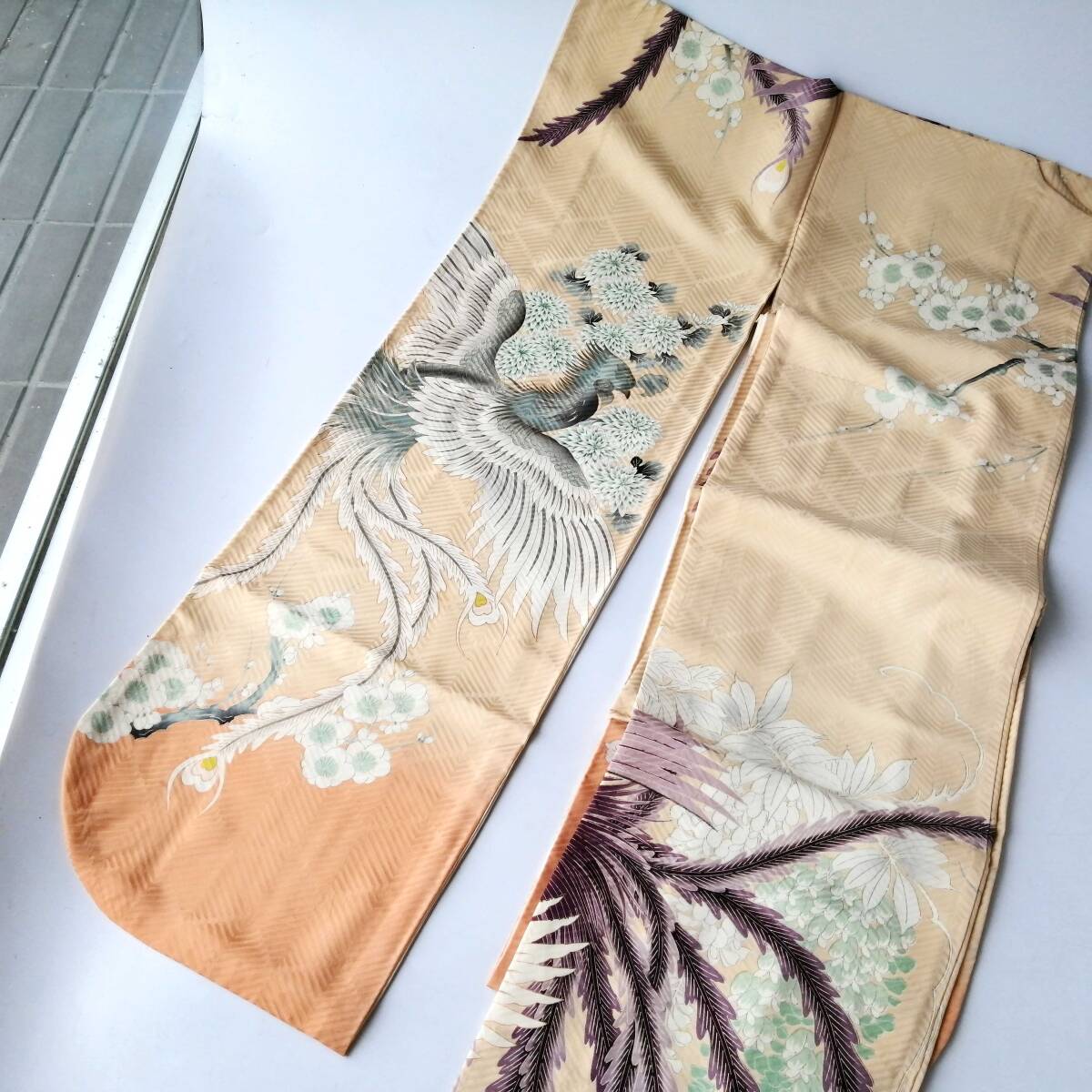 【コンディション】 仕立て上がりですので、 とてもおすすめです♪ ◎検品はしておりますが、見落としがある場合がございますのでご了承下さい。 【実寸サイズ】(単位:cm) 身丈・裄丈・袖丈 160・66・110 |