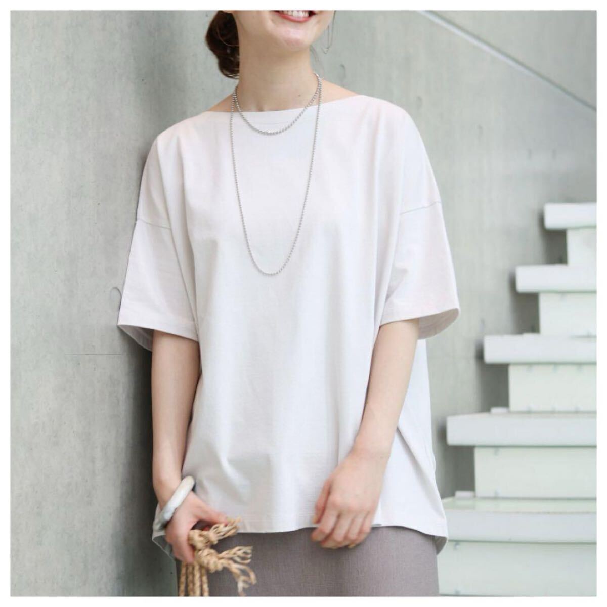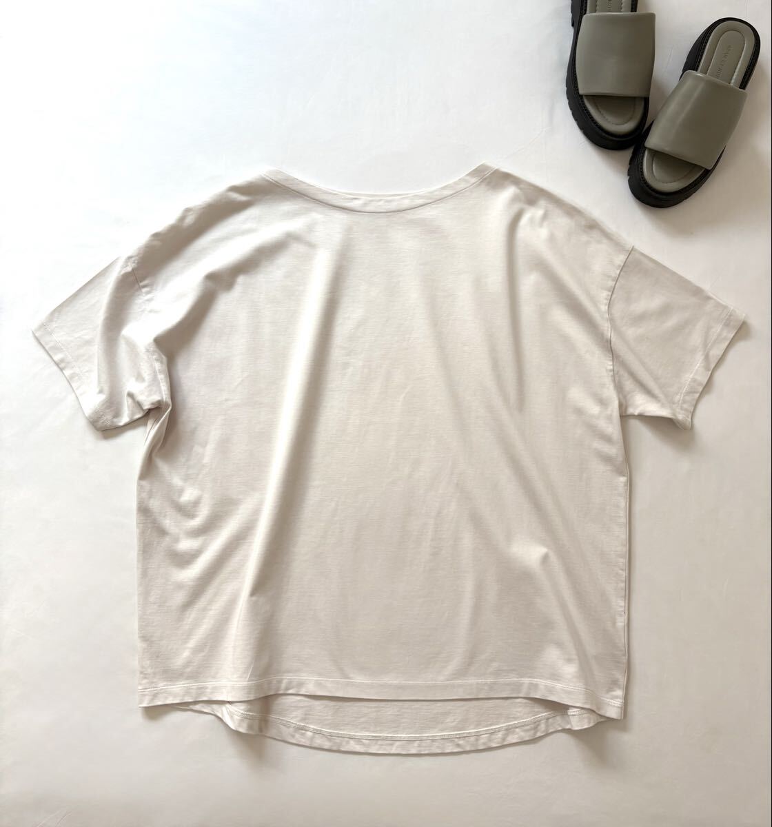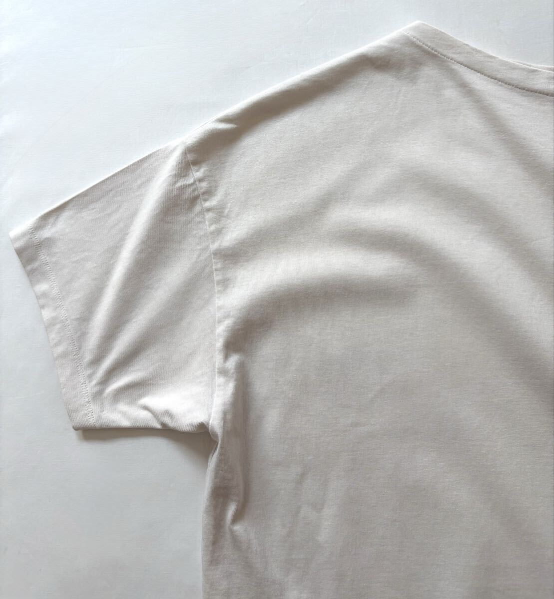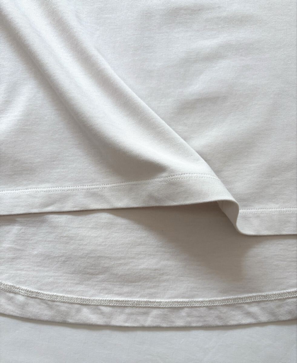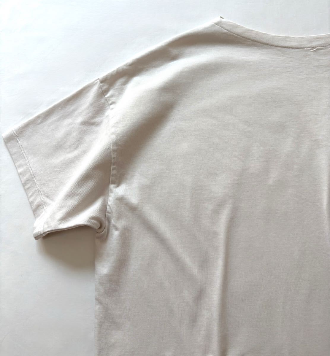 「イエナ」のトップスです。サイズ・・・フリー(身幅約64cm、着丈約72cm)。素材・・・コットン100%。カラー・・・ナチュラル。定価・・・10450円。ワイドでリラックス感のあるカットソーです。80の細番手の糸を度目詰めて編立、さらにワンウォッシュしてやわらかな風合いにしています。ロングシーズン着回しが利きます。数年前に購入し、何度か使用しました。前身頃下あたりに、うっすらとしたしみがあります(写真でご確認ください。とても薄いのでほとんど写りませんでした・・・)目立つダメージはないですが、あくまでユーズドですので、神経質な方はご遠慮ください。よろしくお願いいたします。