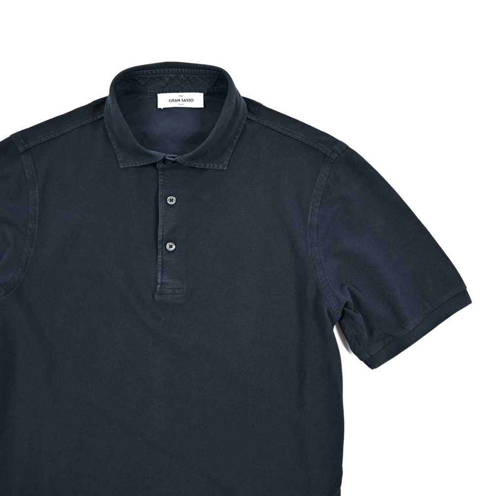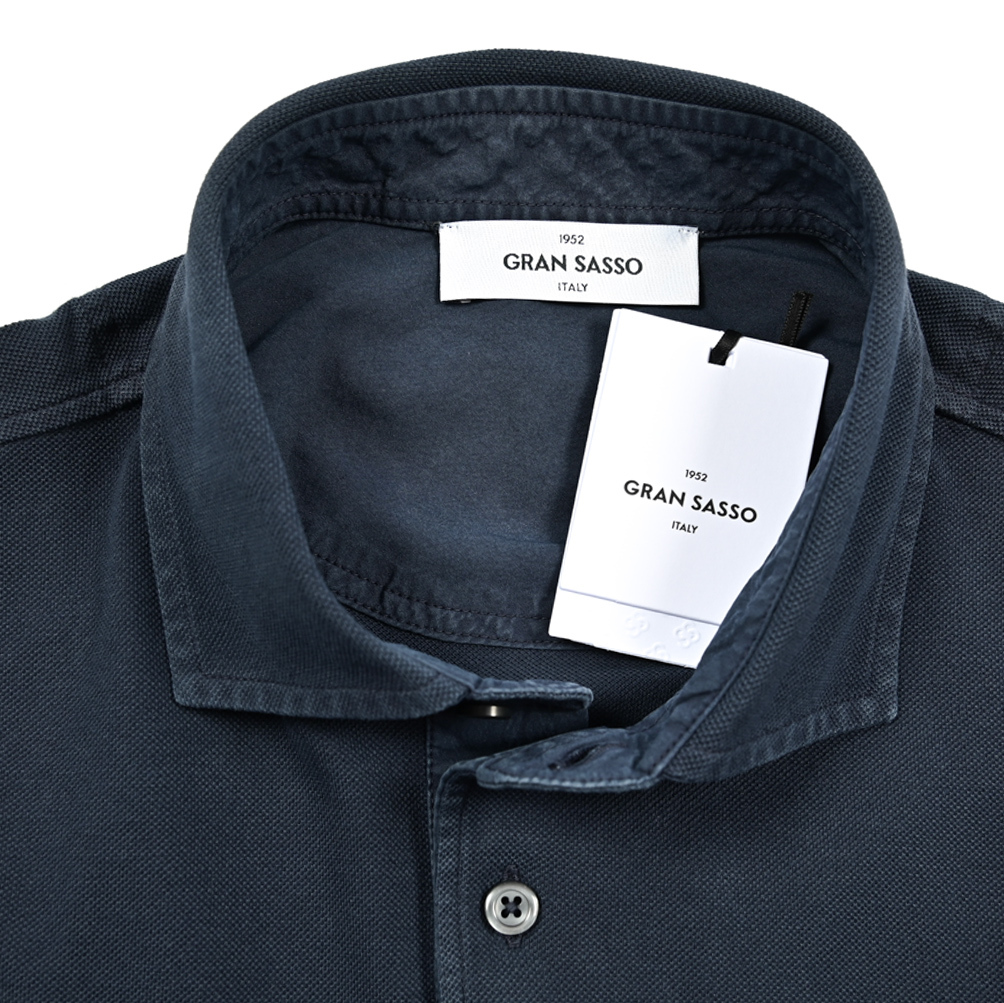 | グランサッソ Gran Sasso 鹿の子 ポロシャツ 半袖 ホリゾンタルカラー 春夏 メンズ ナチュラルストレッチ コットン 100% ネイビー MADE IN ITALY | |