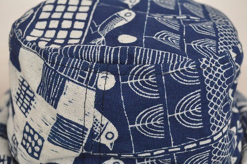 和風タッチのコットン素材 ふちの丸い部分はロールアップしたような感じの縫製になっております