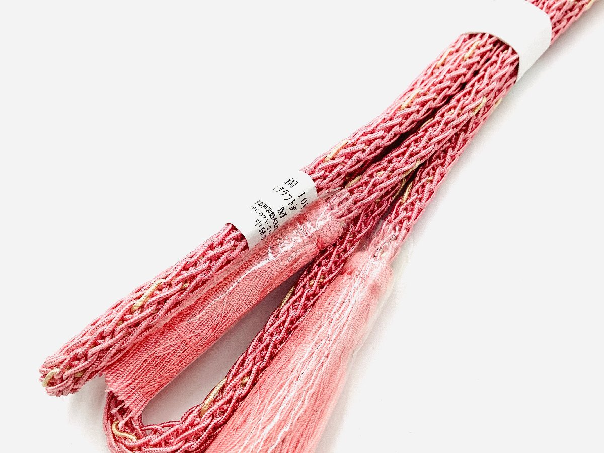 コメント | 未使用の正絹の夏物帯締めです。 和装小物でも帯〆の色柄を変えるだけで、随分雰囲気も 気分も変わる重要アイテムです。 未使用品の綺麗な品物です。 |