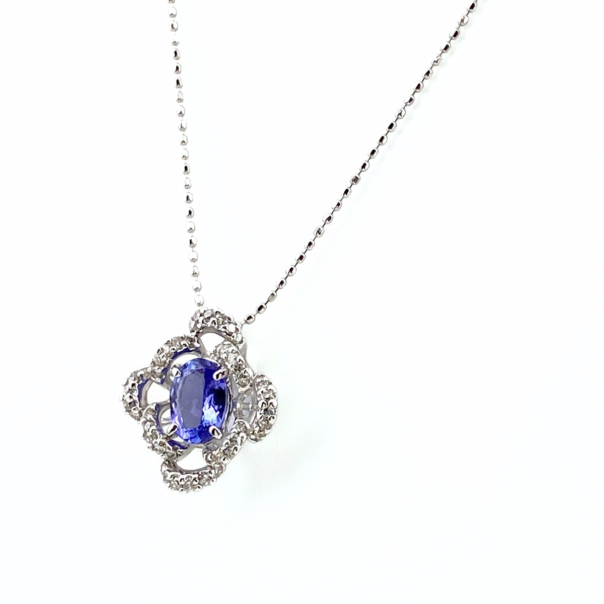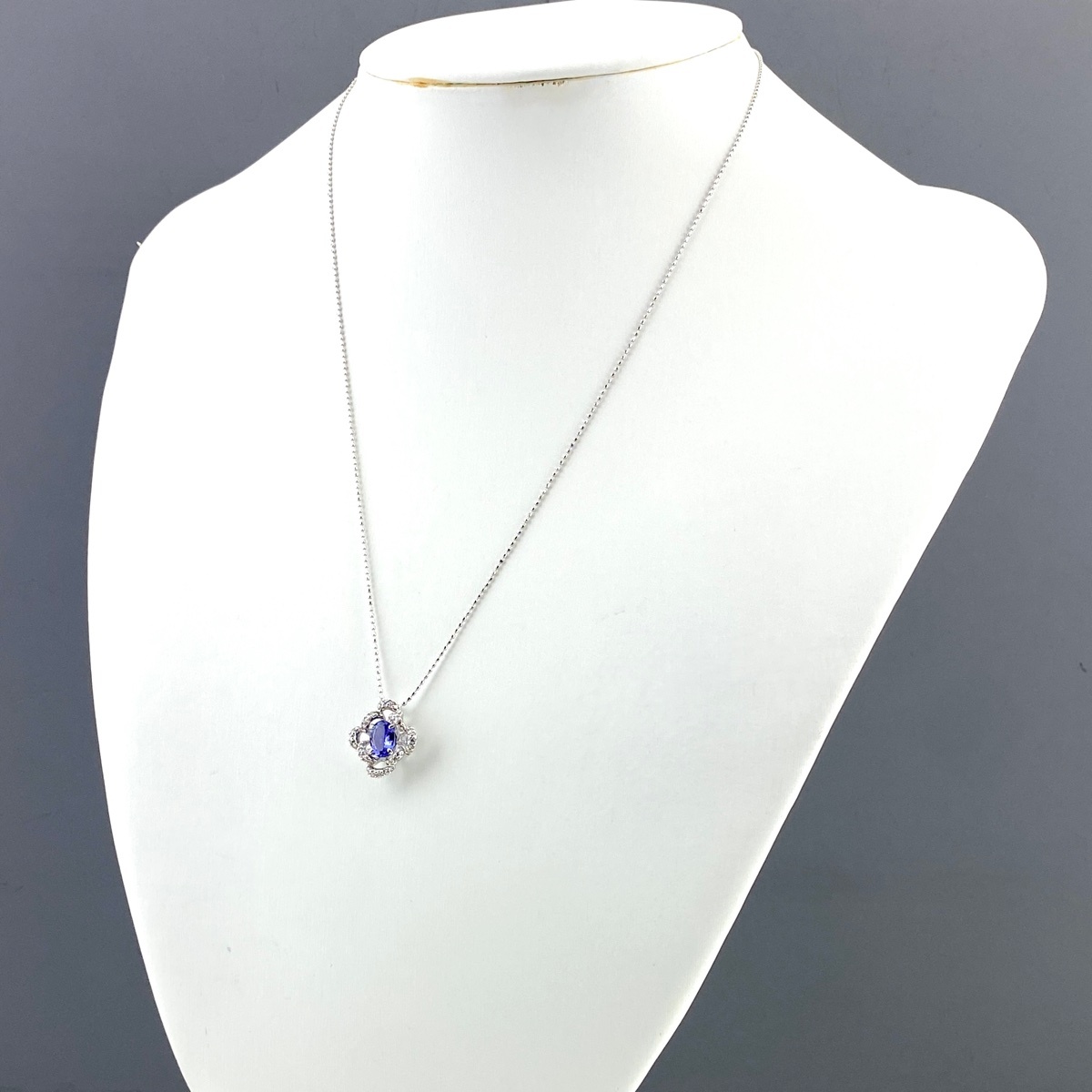 タンザナイト デザインネックレス WG ホワイトゴールド ペンダント メレダイヤ ダイヤモンド ネックレス K18 WG 750 レディース 【中古】 |