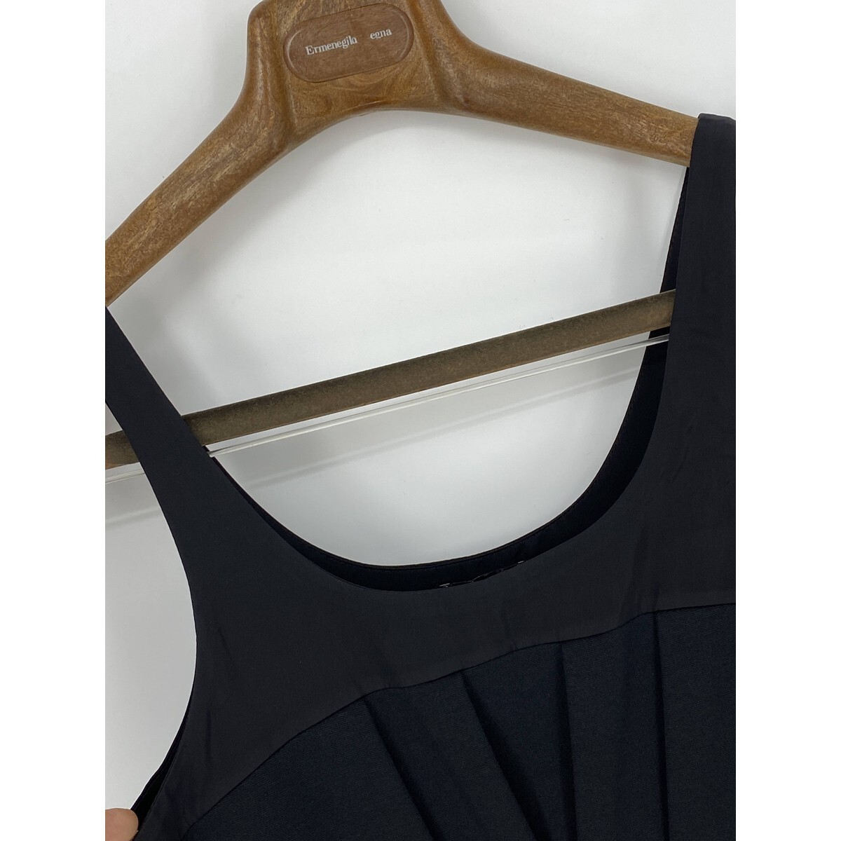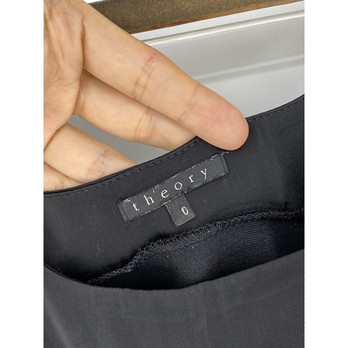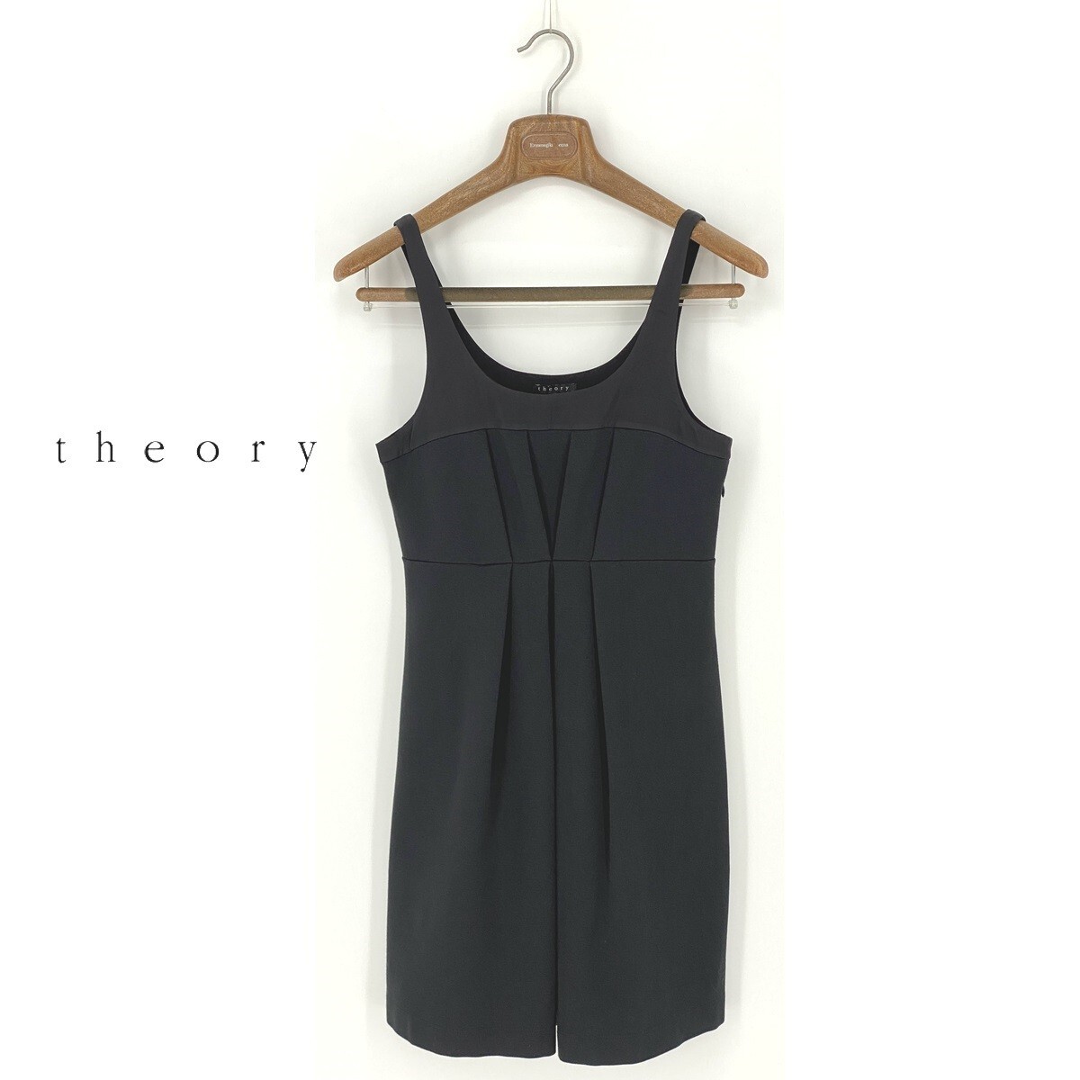 B0365/極美品 theory セオリー コットン ストレッチ 切り替え ノースリーブ プリーツ ミニ ワンピース チュニック 0 S程 黒 レディース