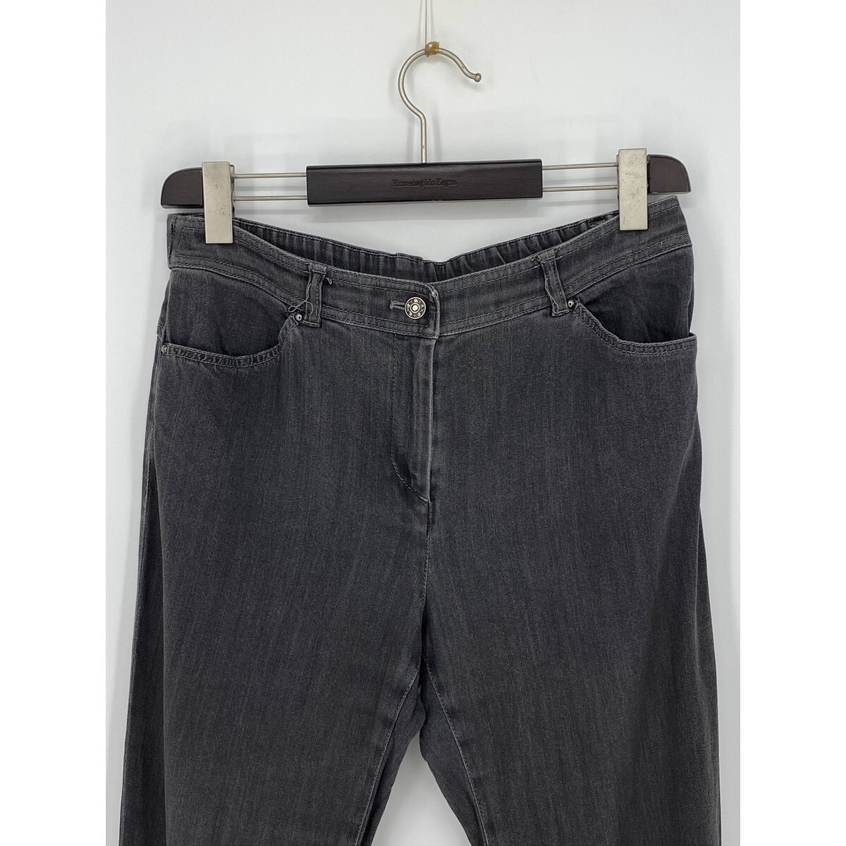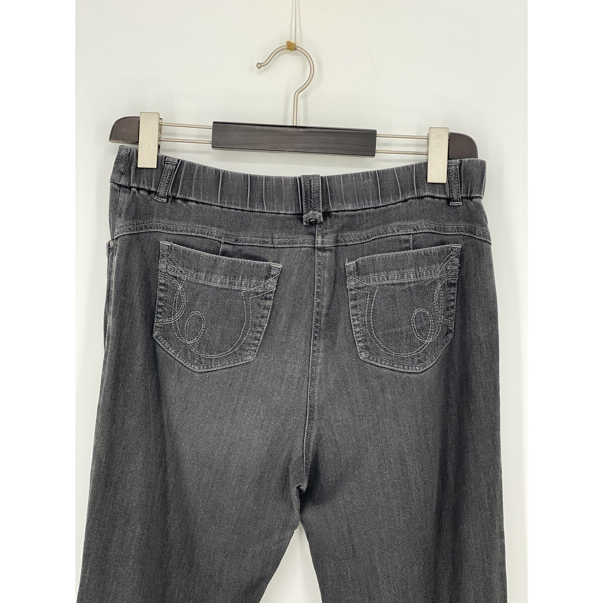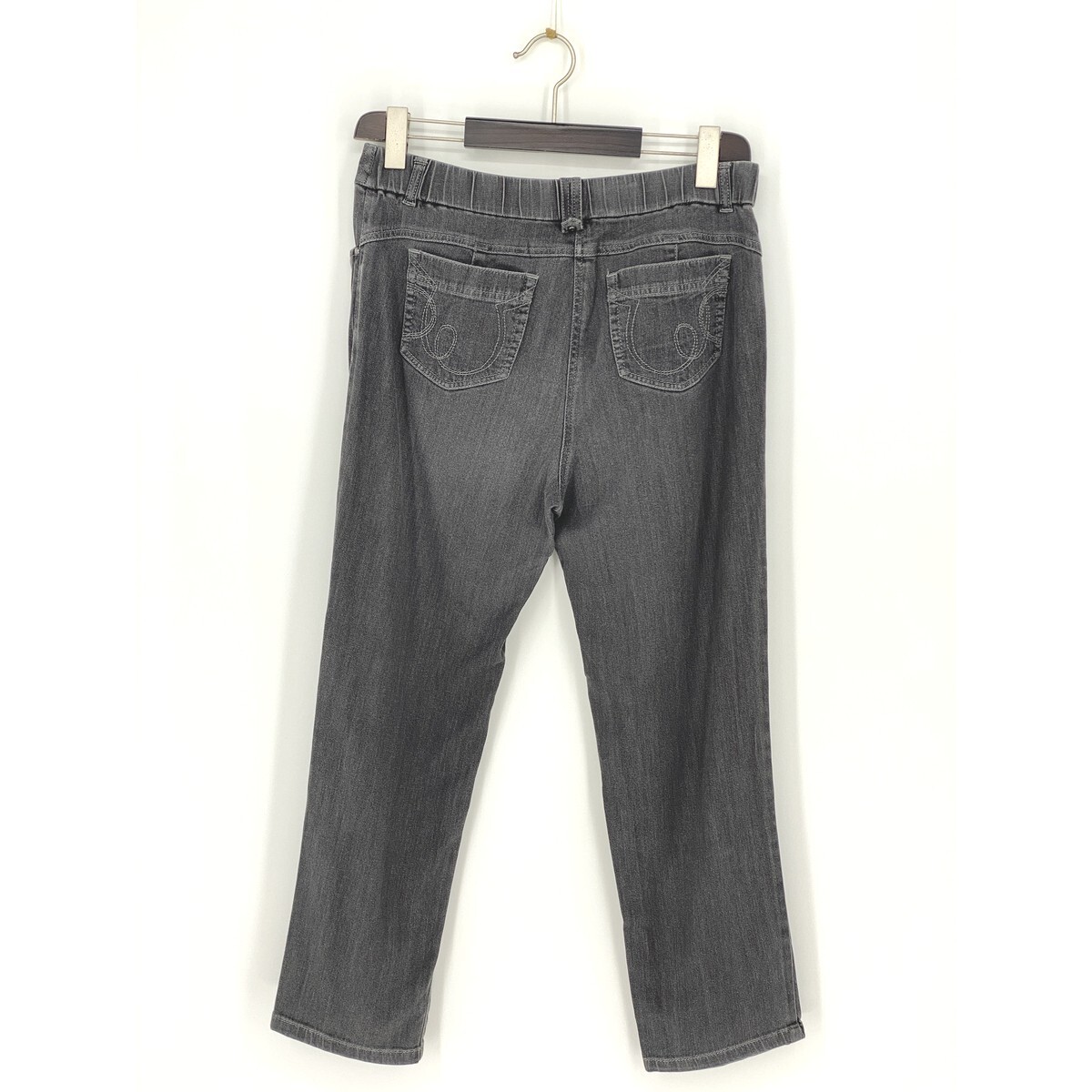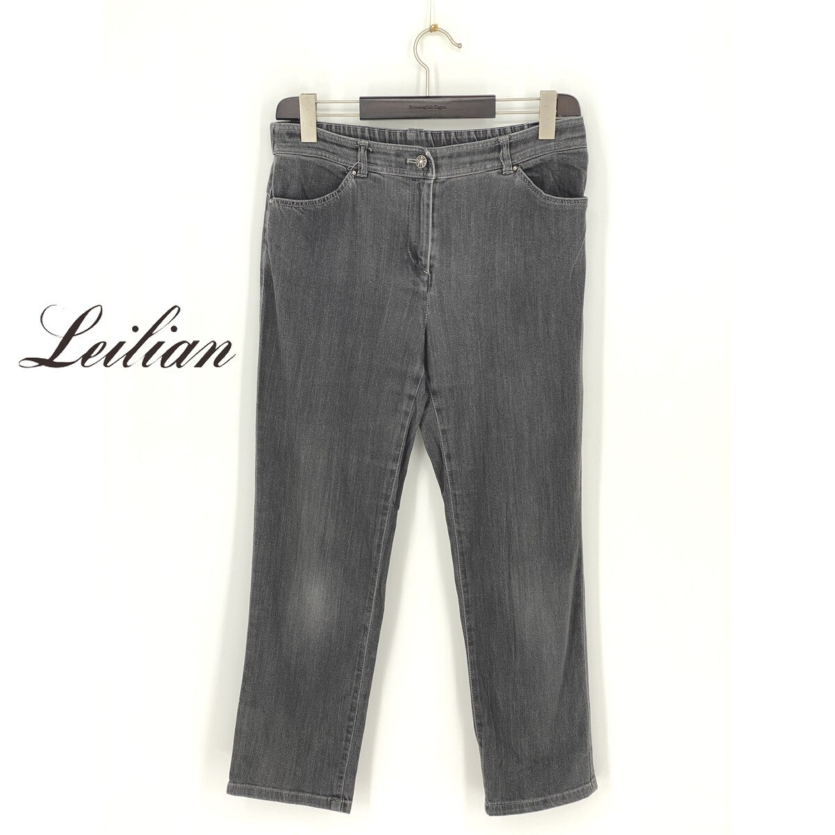 B0606/美品 Leilian レリアン コットン ストレッチ ウエストゴム テーパード イージー デニムパンツ 13+ XL 灰色 レディース 大きいサイズ