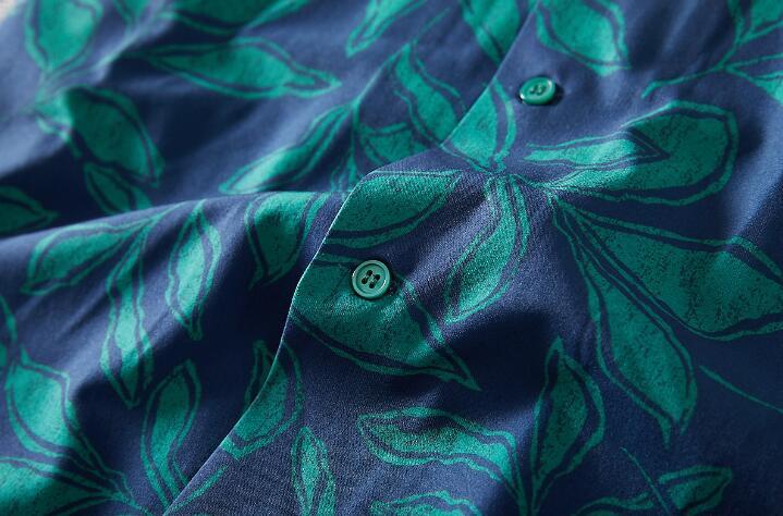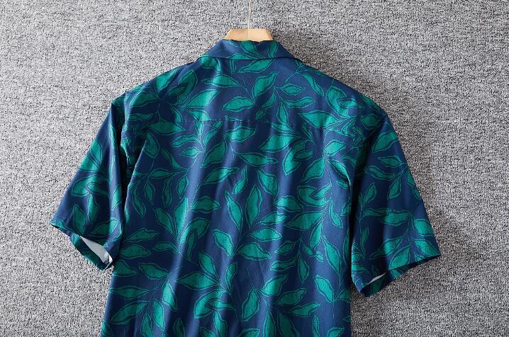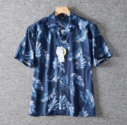 人気品新品 アロハシャツ 半袖 サマー メンズ オープンカラー シャツ 春夏 薄手 葉っぱ柄 総柄 リーフプリント盛夏 開襟 吸湿 速乾/紺色L