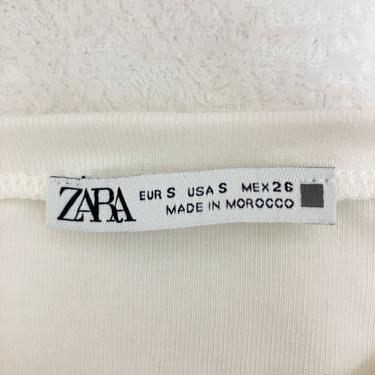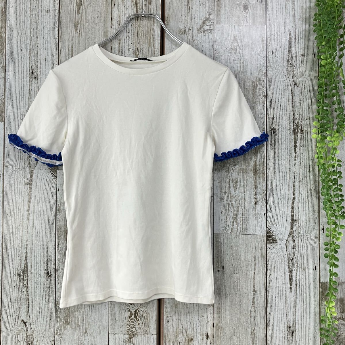 ☆ZARA ザラ☆良品☆Tシャツ 袖口メロウ ストレッチ ホワイト S レディース 半袖 クルーネック トップス [送料無料☆匿名配送] j5801