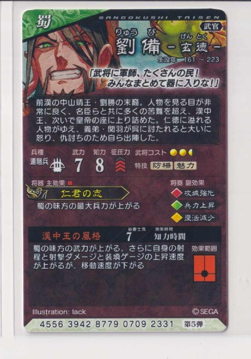三国志大戦6 蜀 5弾 SR 劉備 漢中王の風格 仁君 コレクション用 【3子08】