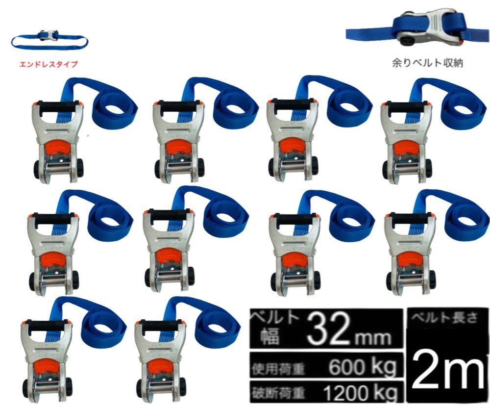ラチェット式ベルト荷締め機 エンドレスタイプ ベルト幅:32mm 長さ 2m ●破断荷重(kg):1200