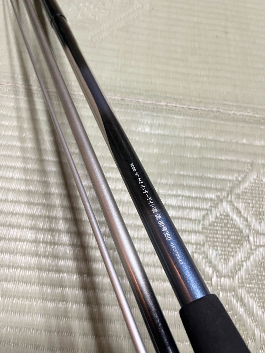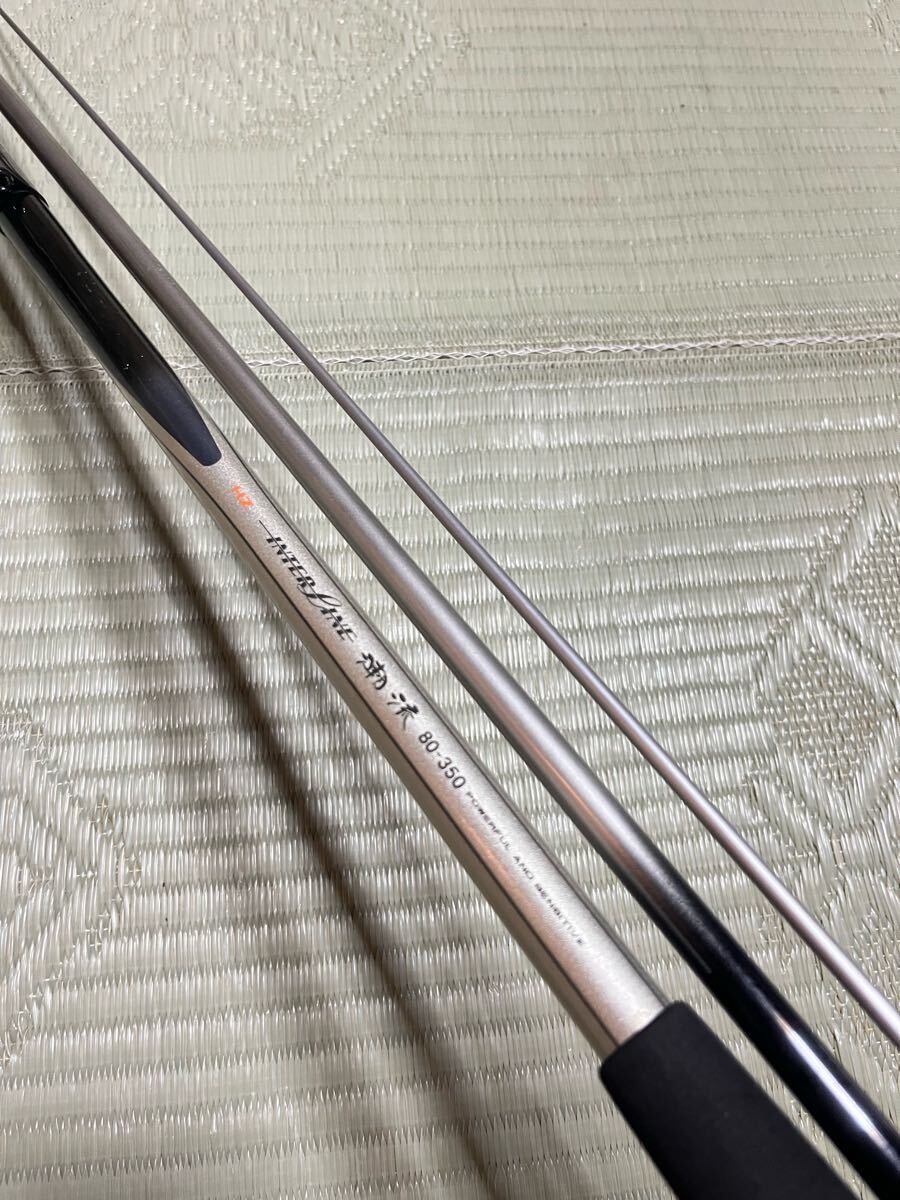 ダイワのマダイ竿 HZインターライン潮流80-350です。長さは3.5m オモリ負荷は80~120号です。しなやかな5:5調子で船の揺れを吸収して付け餌を自然に漂わせます。バットパワーがあるためコマセが振りやすいばかりでなくワラサ等の青物も確実に絞めあげます。