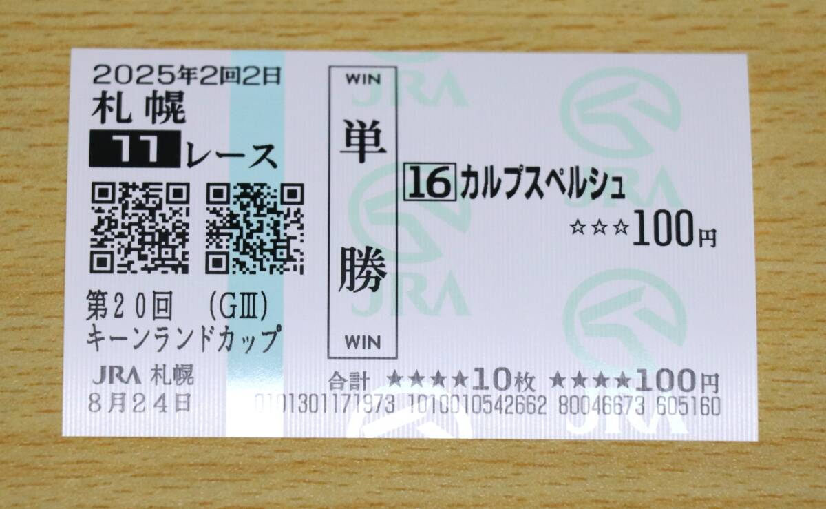 カルプスペルシュ 札幌 11R キーンランドカップ (2025年8/24) 現地単勝馬券(札幌競馬場)です。気に入って頂けた方の落札を心よりお待ちしております。 商品は定型郵便(110円)又は又はゆうパケットポストminiで発送となります。 厚さの関係上、定型郵便の場合は片面段ボール補強、ゆうパケットポストの場合は両面段ボール補強となります。どうかよろしくお願い致します。