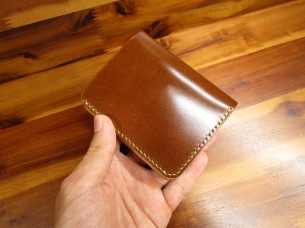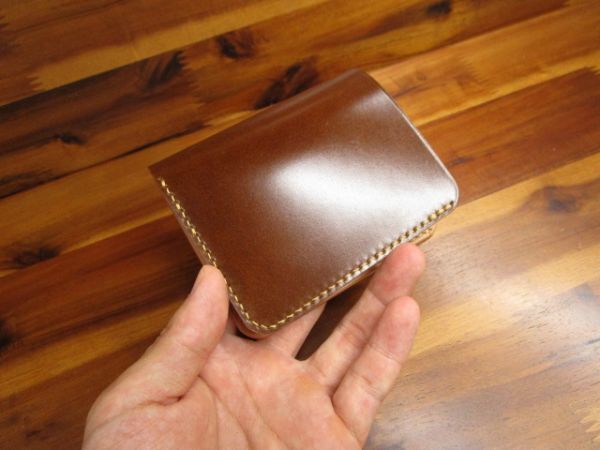 1点限定 コンパクト財布 レーデルオガワ コードバン 手縫い 二つ折り 財布 ミニマル キャッシュレス 日本製 革財布 ミニ財布 茶 ブラウン