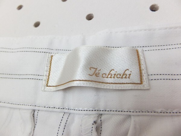 Te chi chi テチチ レディース ストライプ 薄手 ハンパ丈 ワイドパンツ M 白黒 です。